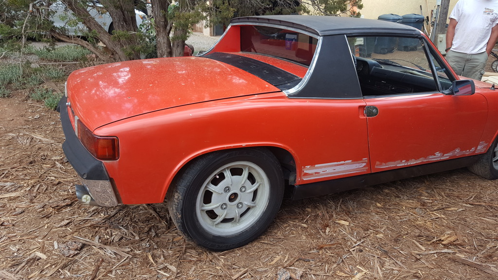 A little back story: my younger brother and I are car fanatics, especially those of the German variety. He owns multiple BMWs, an early 911 with RS bodywork, and a manual 928, and I own an early Boxster, a 944 Turbo, and now the 914. Last summer, my brother went to check out an E36 parts car for his M3 in rural New Mexico. Sitting under some trees was this solid but rather forlorn looking 914: (IMG:http://www.914world.com/bbs2/uploads_offsite/i1322.photobucket.com-20880-1490063976.1.jpg) (IMG:http://www.914world.com/bbs2/uploads_offsite/i1322.photobucket.com-20880-1490063977.2.jpg) $1800 later, we towed home a mouse infested ran-when-parked 75 914. The 1.8 FI engine had been swapped out for a 1.7 with 1.8 heads and a single Weber carb, and the impact bumpers had been backdated to chrome bumpers. Mars Red with Mahle gas burners! (IMG:http://www.914world.com/bbs2/uploads_offsite/i1322.photobucket.com-20880-1490063977.3.jpg) It had been parked because the previous owner thought it had developed a serious front main seal leak. We got it running with a minimum of effort and saw the significant oil leak. We impulsively dropped the motor and resealed the oil pump, suspecting that might solve the problem. (IMG:http://www.914world.com/bbs2/uploads_offsite/i1322.photobucket.com-20880-1490063978.4.jpg) Motor back in, along with a dual Weber setup we came across, it seemed like the leak was fixed. But it was running so badly, we couldn't really drive it. Since my brother was working part time at a Ferrari shop that primarily builds vintage motors, we were able to get the carbs rebuilt for cheap by the excellent Ferrari mechanic. (IMG:http://www.914world.com/bbs2/uploads_offsite/i1322.photobucket.com-20880-1490063978.5.jpg) Now with the car running much better, two thing were apparent, 914s are fun (IMG:style_emoticons/default/driving.gif) and we didn't fix the oil leak. (IMG:style_emoticons/default/WTF.gif) About this time, my growing love for this 914 was finally too much to resist. So my brother and I made a trade on his half of the purchase price for a ran-when-parked manual 928 that I had picked up. Still not sure who ended up with the better half of that deal, but we're both happy! With the car mine now, I started in on some of the needed projects. Thanks to 914World, I solved the major oil leak with a bolt in thermostat pulley hole (quite a bit easier than dropping the motor). With that dealt with, I could see a decent driver on the horizon. More soon! Cheers, Jeremy |