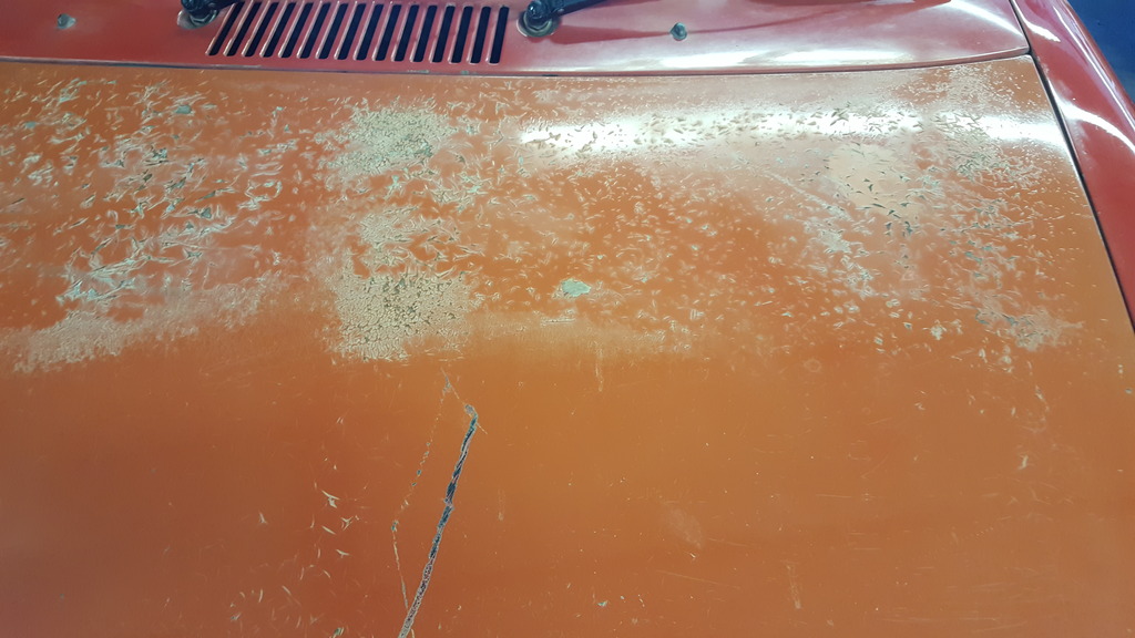 Further...not convinced you have a 1975 car from the info made available. You have early (1970-74) bumpers, granted they may be backdated, but if original you could actually have a 1974 MY car, built in 1975. Your VIN will tell you the MY, does it start with 474 (1974) or 475 (1975)? This is all to suggest that the paint could be Tangerine if its a 1974, or Nepal if its a 1975. |