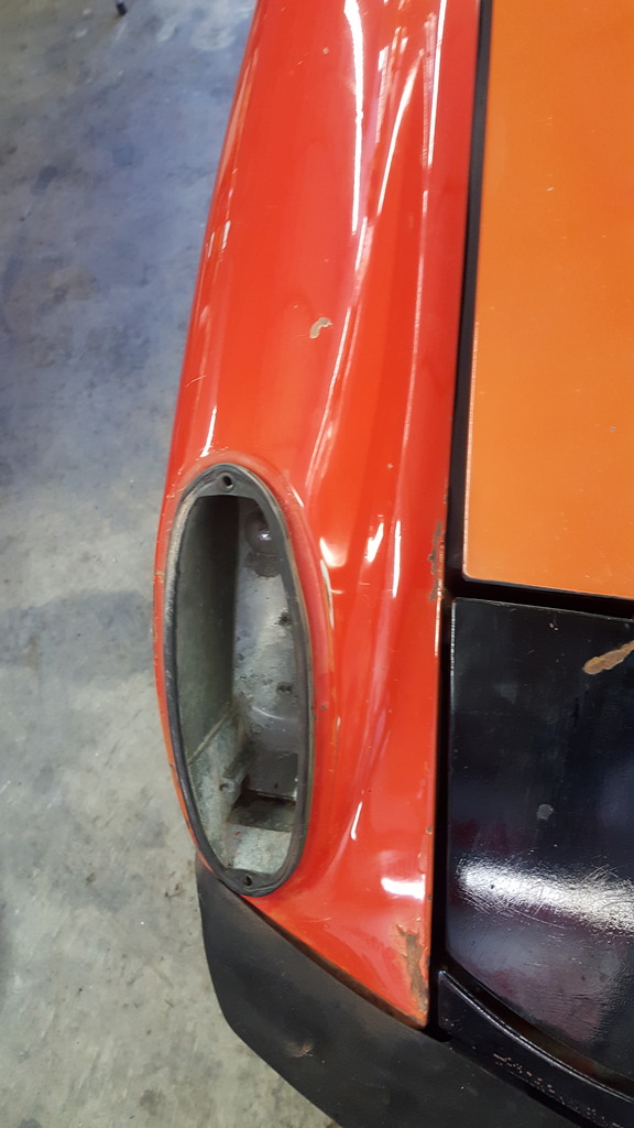 The interior really wasn't bad, thanks to some reupholstered seats in black vinyl with corduroy centers. The carpet was nice, but because of the mouse problem, it had to be trashed. Out came the interior, a bunch of scrubbing and deodorizing (not entirely effective), and a new carpet kit went in. (IMG:http://www.914world.com/bbs2/uploads_offsite/i1322.photobucket.com-20880-1490066034.1.jpg) (IMG:http://www.914world.com/bbs2/uploads_offsite/i1322.photobucket.com-20880-1490066034.2.jpg) It will get a molded dash cover soon to cover up that cracked dash. A leather wrap with thicken up the factory wheel. The nose of the car is a paint mess, but with pretty straight metal. The hood was painted orange (IMG:style_emoticons/default/blink.gif) at some point and looks awful. It will be smoothed out and I will wrap it in 3M 1080 Matte Black. (IMG:http://www.914world.com/bbs2/uploads_offsite/i1322.photobucket.com-20880-1490066035.3.jpg) The popup headlights had been poorly painted in gloss black. They got smoothed and wrapped in the Matte Black. (IMG:http://www.914world.com/bbs2/uploads_offsite/i1322.photobucket.com-20880-1490066035.4.jpg) (IMG:http://www.914world.com/bbs2/uploads_offsite/i1322.photobucket.com-20880-1490066035.5.jpg) There was some orange paint overspray on the front fenders. A little wet sanding with 2000 grit removed it pretty well, followed up with some Meguires machine glaze. (IMG:http://www.914world.com/bbs2/uploads_offsite/i1322.photobucket.com-20880-1490066035.6.jpg) (IMG:http://www.914world.com/bbs2/uploads_offsite/i1322.photobucket.com-20880-1490066035.7.jpg) I picked up some Mars Red touchup paint and will gradually work on the chips and scratches. Old white Porsche script is a major eyesore, so using an eraser wheel in a drill, I went to work to prepare the area for new black Porsche script. (IMG:http://www.914world.com/bbs2/uploads_offsite/i1322.photobucket.com-20880-1490066036.8.jpg) (IMG:http://www.914world.com/bbs2/uploads_offsite/i1322.photobucket.com-20880-1490066036.9.jpg) There'll be more! |
