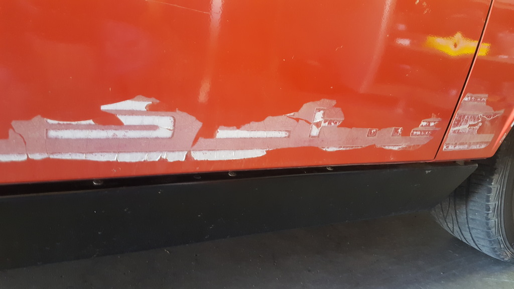 Color code is L31B, Mars Red. It looks like the car had a good quality respray at some point, but the matching wasn't perfect compared to the trunk areas. But the orange on the front fenders and hood is not factory color.