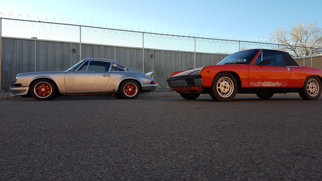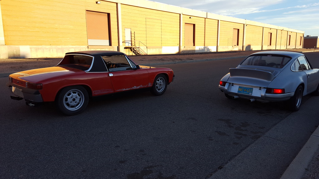(IMG:http://www.914world.com/bbs2/uploads_offsite/i1322.photobucket.com-20880-1490104006.1.jpeg) I just have to keep my sights on that, rather than my long-term dream build inspiration: Black Beauty built by Patrick Motorsports. If I ever get to that, it'll need a different thread, and a couple extra jobs! (IMG:http://www.914world.com/bbs2/uploads_offsite/i1322.photobucket.com-20880-1490104007.2.jpeg) Back to the real world. When I got the car, it had Vitaloni mirrors which are okay but don't really suit the car. But that's fine for now. Since there was no mirror glass on the drivers side, I removed them both to see if they could be swapped. With a little wrangling, I managed it, so now I could at least change lanes without trying to look out that joke of a rear window. I'll see if can get a mirror cut for the other one and reinstall it. (IMG:http://www.914world.com/bbs2/uploads_offsite/i1322.photobucket.com-20880-1490104007.3.jpg) (IMG:http://www.914world.com/bbs2/uploads_offsite/i1322.photobucket.com-20880-1490104007.4.jpg) A coating of Plasti-Dip helped freshen up the chaulky plastic housing. (IMG:http://www.914world.com/bbs2/uploads_offsite/i1322.photobucket.com-20880-1490104007.5.jpg) It's been awesome to take a few short drives in the industrial area by our little shop. Here's a few pics of the 914 and my brother's 911. (IMG:http://www.914world.com/bbs2/uploads_offsite/i1322.photobucket.com-20880-1490104007.6.jpg) (IMG:http://www.914world.com/bbs2/uploads_offsite/i1322.photobucket.com-20880-1490104008.7.jpg) It's very cool being around these old road warriors! Hopefully soon we'll be able to get them out onto some winding mountain roads for a real drive. I'm a school teacher on Spring Break and my wife is out of town so I better get my butt down to the shop! |