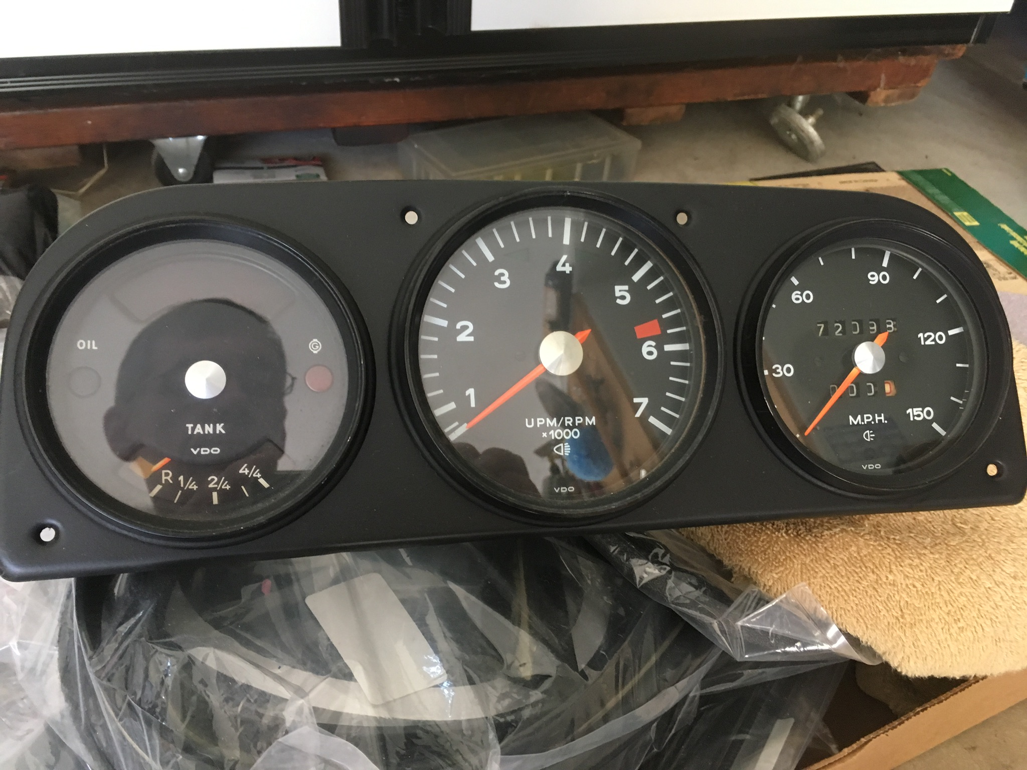 Speaking of things that don't work, it's really a pretty short list. Temp gauge Parking brake ratchet Rear defroster I thought I only had one working horn, since it sounds like a single tone, not high and low. But it turns out that both ARE working, but both are apparently the same, not one high and one low. Will probably want to correct that at some point. I think that's it. All the lights, everything else I've checked seems to work. As seen here, I've been working through the list as I assemble things. Today I repaired the odometer, although I haven't completely reassembled the speedo yet as I'm waiting for fresh paint on the bezel to dry. |