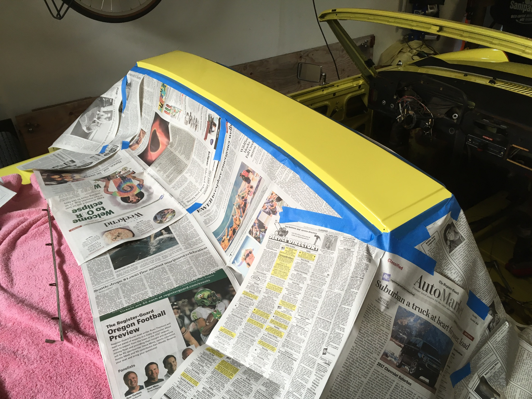 Both front and rear valances have been refinished and installed, the front main trunk seal glued in, got the gauge cluster reassembled and ready to go back in. Have been gathering more parts, I may be getting close to done there. Prepping to repair the rear defroster grid while the glass is still out of the car, then reinstall it. Sail panel vinyl sometime next week, I hope. Dash will get some love too. New top pad is ready, but will need to glue on new basketweave vinyl while the pad is off. Then a new windshield, at which point I can begin putting the bulk of the interior back together. I'm guessing completion around the end of October. Then (IMG:style_emoticons/default/driving.gif) |