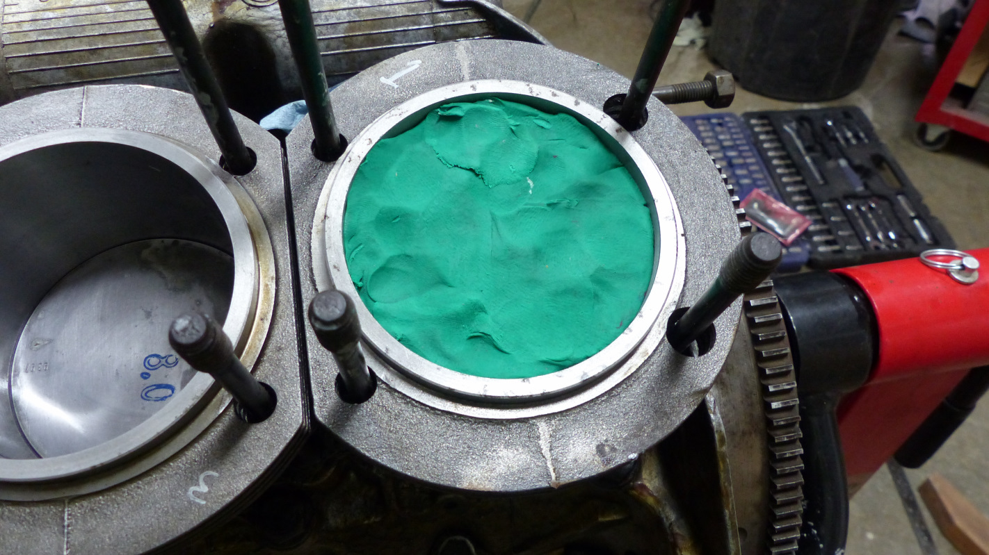 ![]() According to this CR>HP calculator, that should be good for one free pony from the slightly higher than stock CR. The irony after all this stewing over deck heights is that I wound up doing exactly what I would have if I'd never heard of deck heights before - install the 0.01 base rings and head gaskets that come with the gasket sets. At least now I'm aware of the irregularities in my engine so I have something new to worry about. (IMG:style_emoticons/default/screwy.gif) With that settled, I took all the P&Cs off one at a time and gave them a good scrubbing with soap and water followed by a flash dry with compressed air and a fresh coat of clean oil. The base sealing surface of each cylinder and mated register was wiped clean with lacquer thinner and Yamabond was applied to the cylinder base and base rings before making a final adjustment or ring gap locations and sliding the jugs on. Each jug was snugged into the register using a socket as a spacer on one stud while I worked on the rest. After all the jugs were on, I installed my throw away set of gaskets into the 3-4 side head but before putting it on, I covered the piston top of #3 with modeling clay. I just did this one since it has the lowest deck. I figured if this one is good, they should all be good. ![]() I then torqued the heads down on both sides (I didn't bother with gaskets on 1-2 at this point) and quit for the night to let the base sealant set while under torque. This morning I mocked up #3 with push rods and rockers and set them to 0 lash before rotating the crank a few revolutions. ![]() I actually had to go through this a few times because I underestimated how much clay was needed to get a good impression of the valves. The valves aren't coming anywhere close to the pistons (like around .15-.20 clearance), which surprised me and made me think something was wrong. But I checked and rechecked everything and made sure the tappets were pushing the valves in fully. Still waiting for confirmation from Elgin on my cam specs, but I'm pretty sure it is stock lift with wider duration so I guess I should expect the valves to get too crazy. Hard to get an accurate thickness measurement in clay, but the minimum clearance looks to be around 0.05" with the slightly thicker head gaskets than will be in the final fit. That all seems good from a safe margin standpoint. ![]() I discovered I may not have a full set of proper head washers so @Mblizzard came to my rescue and is going to send me a set. I won't be able to do final bolt-up until those arrive. I know this isn't the perfect blueprinted build, but I'm glad it is behind me. I normally like working on the guts of engines but I don't have a large, clean bench needed to do it so this has been more stress than fun. Thanks to those of you who helped coach me through this. Happy to get back to cleaning up rusty crap and making it pretty again! (IMG:style_emoticons/default/rolleyes.gif) |