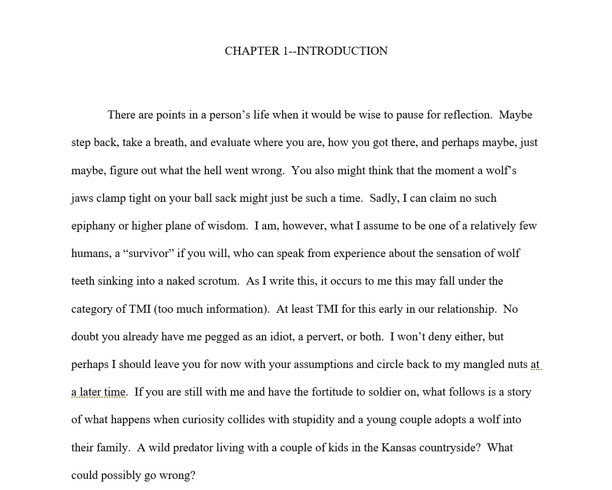 I want more! Don’t dangle the intro and one chapter. This is awesome stuff. I’ve always wanted a wolf or wolf hybrid. But I must ask, have had more kids since the intro?