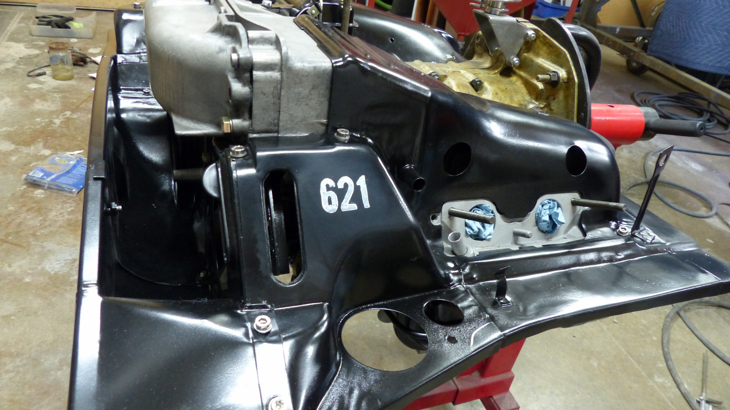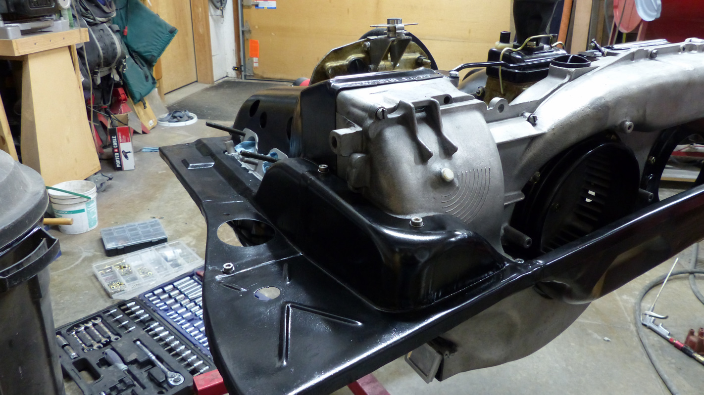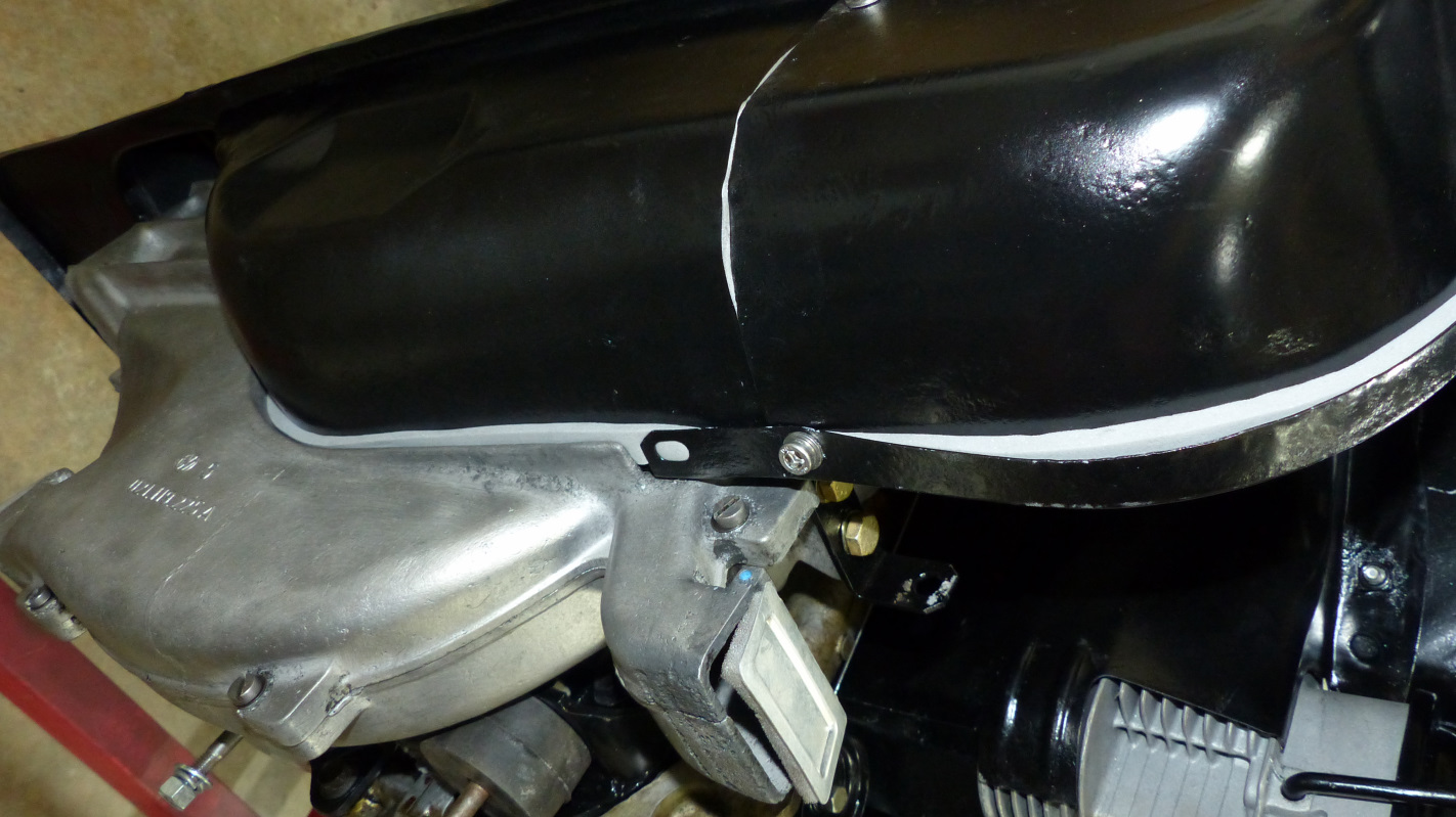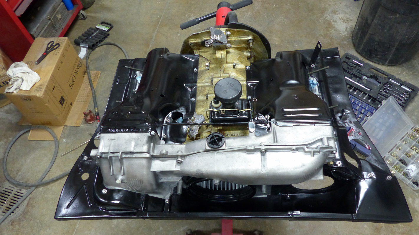 I haven't had much to report but not because I haven't been busy. There is no picture for my biggest accomplishment but my brake calipers and hardware are now in Wisconsin for plating. I got fed up with the lack of response and high price quote from the place in Salt Lake City I was originally hoping to send part. Shout out to @mb911 for the tip on his plater. Great customer service so far. The rest of my time has been spent stripping and repainting engine tin. I used paint stripper on the upper tins to make media blasting after easier. I was hoping to get lucky and reveal some secrets in the tin and was rewarded. ![]() ![]() That VHT Satin Black engine paint is a PITA to work with. It's nearly impossible to maintain a wet line on these complicated shapes so you wind up with dry overspray in areas. It also has a tendency to crinkle if you apply a coat too thick. I never had these issues with any of their other colors or paints. Enough complaining, I'll just skip to the end result. I only had one metal spring tab to hold down the flapper assembly. Thanks to a tip from Bruce Stone, I made another from a piece of metal shipping banding. Hint: metal banding has gotten harder to find. I found it in the fencing section of my local ranch supply. Can you tell which is the repro? ![]() I have a NOS thermostat I bought when they were still about $10 and had Awesome Powdercoat make me a cable retaining nut and new cable for dirt cheap. ![]() ![]() One more detail before getting to the good stuff. The tin for the fan shroud originally had some gasket material to seal the joints. I used some 1/2" x 1/4" window closed cell foam weatherstrip I picked up at Lowe's (gray stuff oozing out here). ![]() |