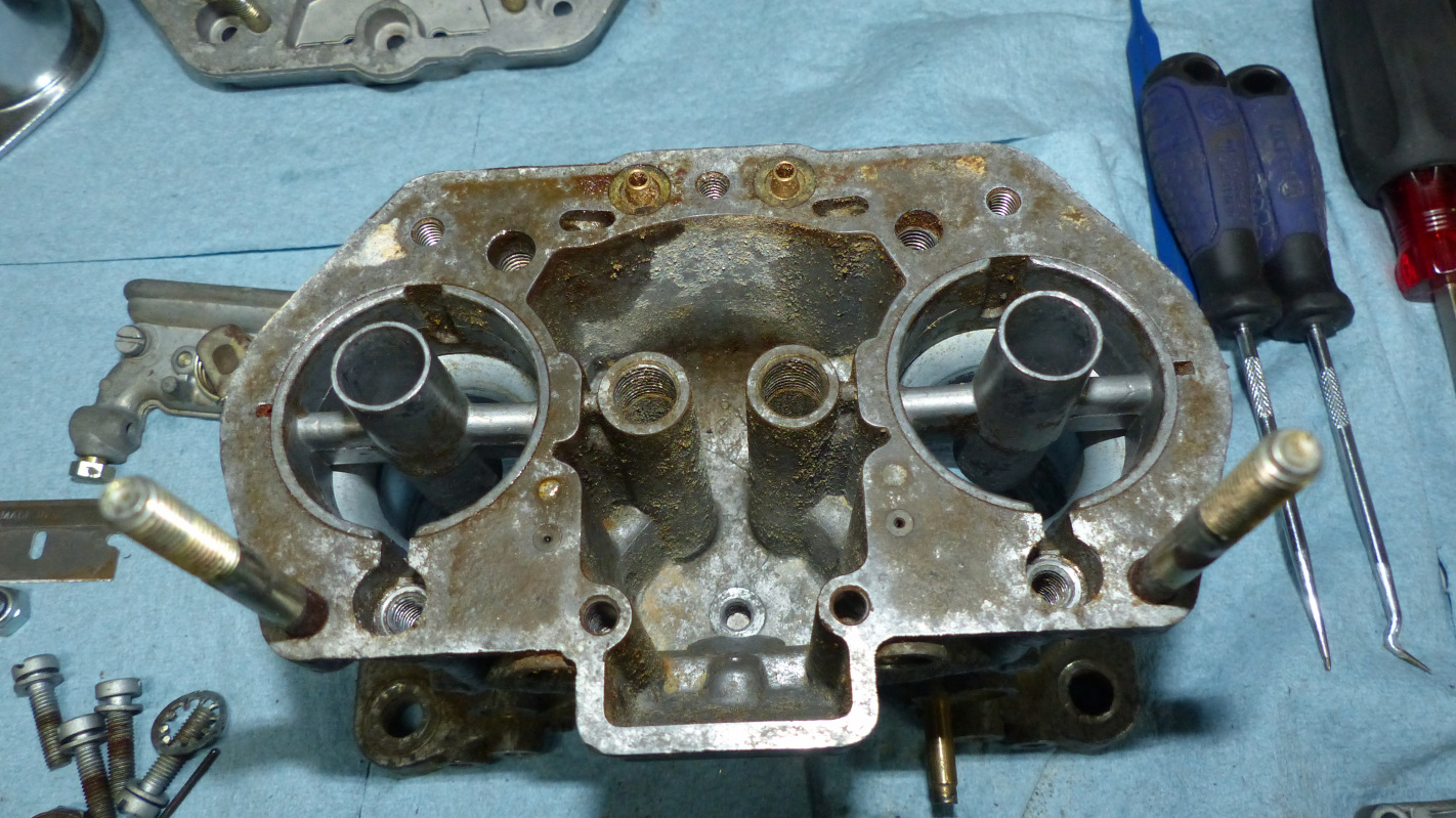 The last thing I'll report on is that I started refurbing my carbs. Believe it or not, these are NOS but decades of storage in the humid Midwest left them nasty and corroded.