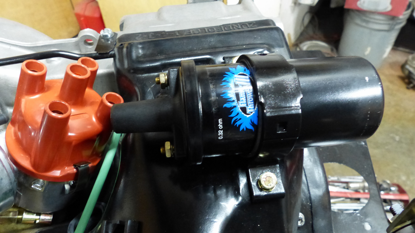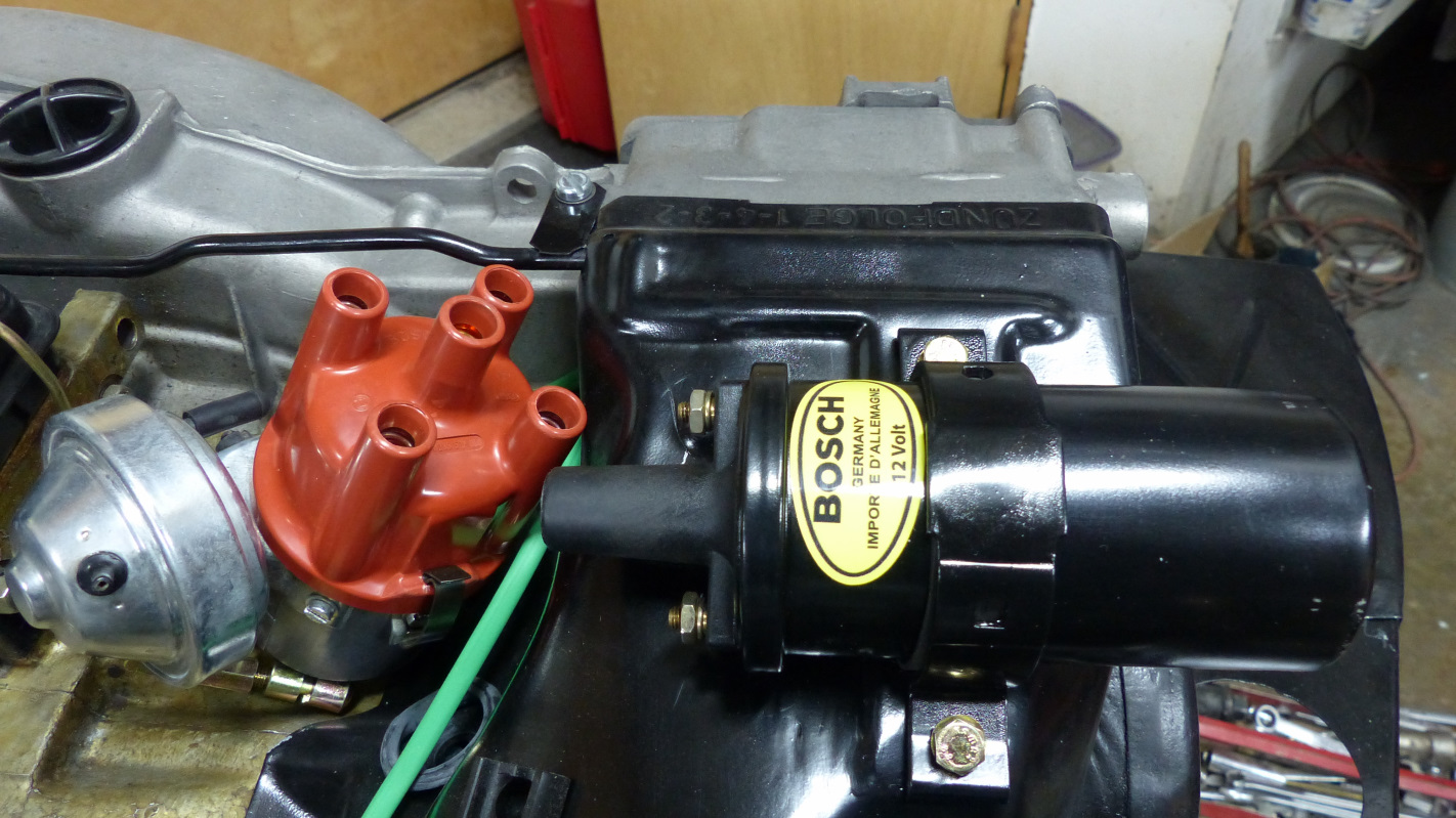 I thought the black top was the best give away along with not being able to buy these old Bosch coils from Pelican. All the genuine Bosch coils I have or have seen have brown tops. Rory is right that the tip is longer than the originals but the apparent interference is just the camera angle. The dizzy rotates fine as it sits. I was curious about the French too. All of the repro stickers on ebay have that and all the photos of vintage Bosch coils have it too. Were they made in France? It should provide a nice hot spark for my Pertronix anyway. I need to transfer the spade connectors from one of the coils in my stock pile. Trying to resist the urge to paint that black top. (IMG:style_emoticons/default/screwy.gif) |