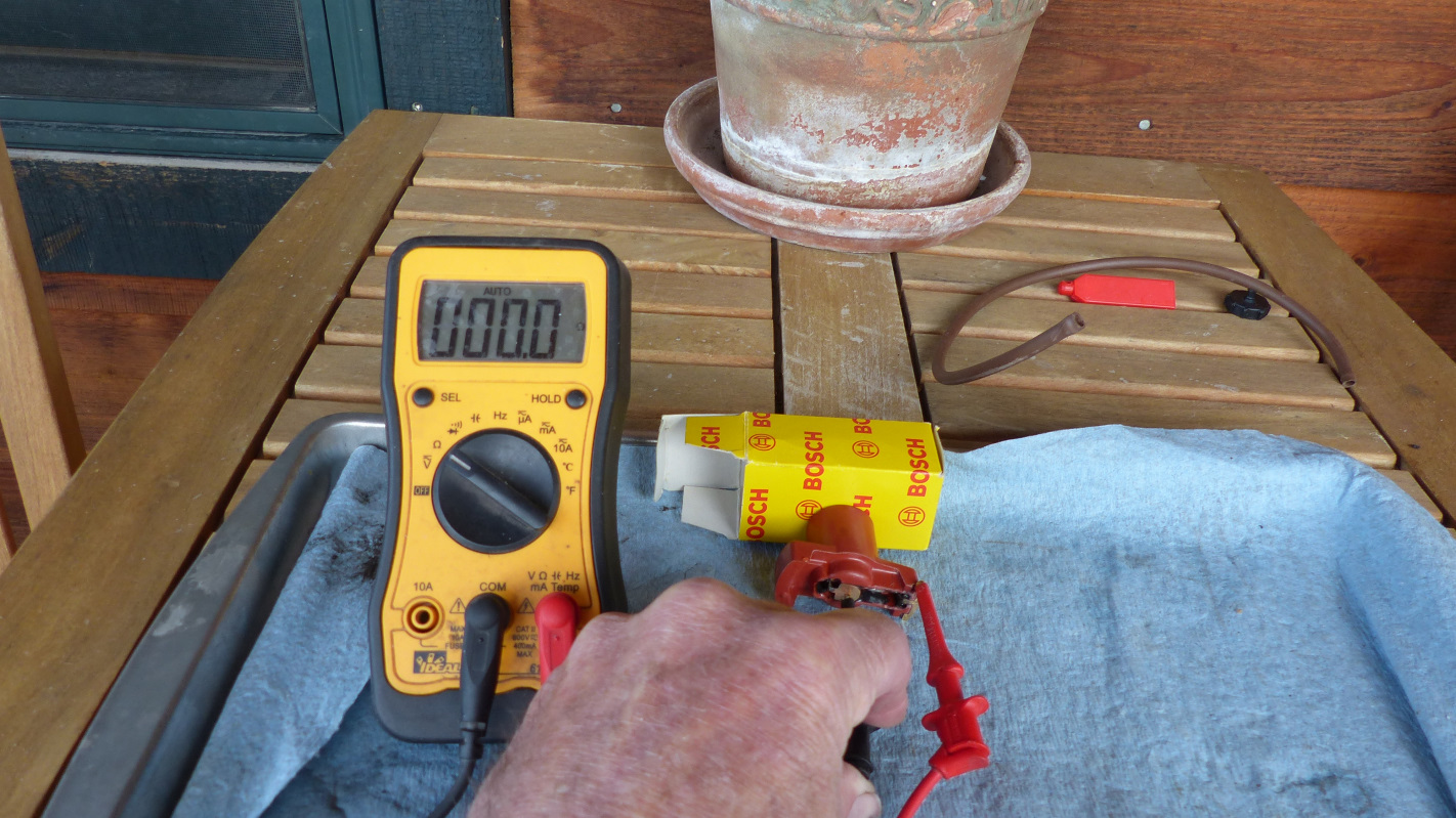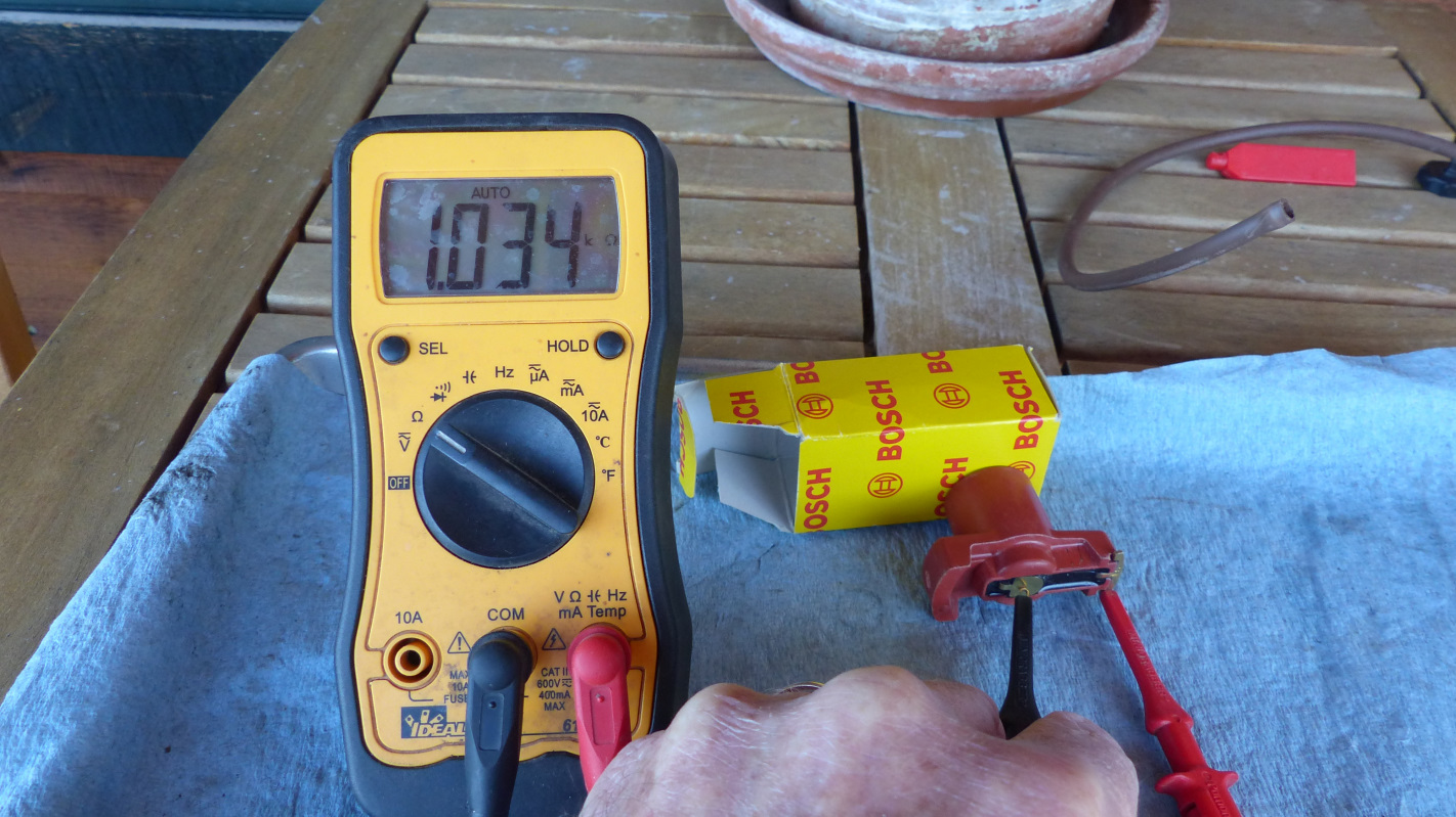 The Bosch rotors have a 1k ohm resitor inside that will apparently eventually fry if a high output coil like the one I have is used. With my luck, that would occur when I was trying to evade Johnny Law. (IMG:style_emoticons/default/happy11.gif) There is a great how-to to mod the rotor to remove the resistor. You can also buy a modded rotor from aircooled.net but they are too spendy for this CSOB. Check the tutorial for details. Here's mine after I wallowed it out and soldered a 12g wire in. ![]() And now there is 0 ohms resistance. Last step was to refill the cavity with epoxy potting compound. Aside from a couple small nicks on the ceramic from not having quite the right shaped Dremel bit on hand, you'd never know anything had been done to this. ![]() |