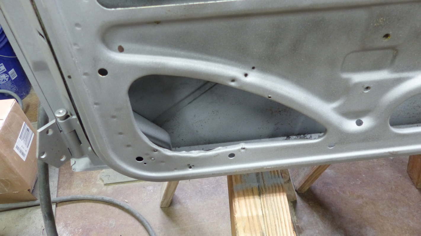 Continued refurbishing the doors today. First up was filling the Swiss cheese left from previous dent repair on the passenger door. It wasn't as bad as the driver's side was.