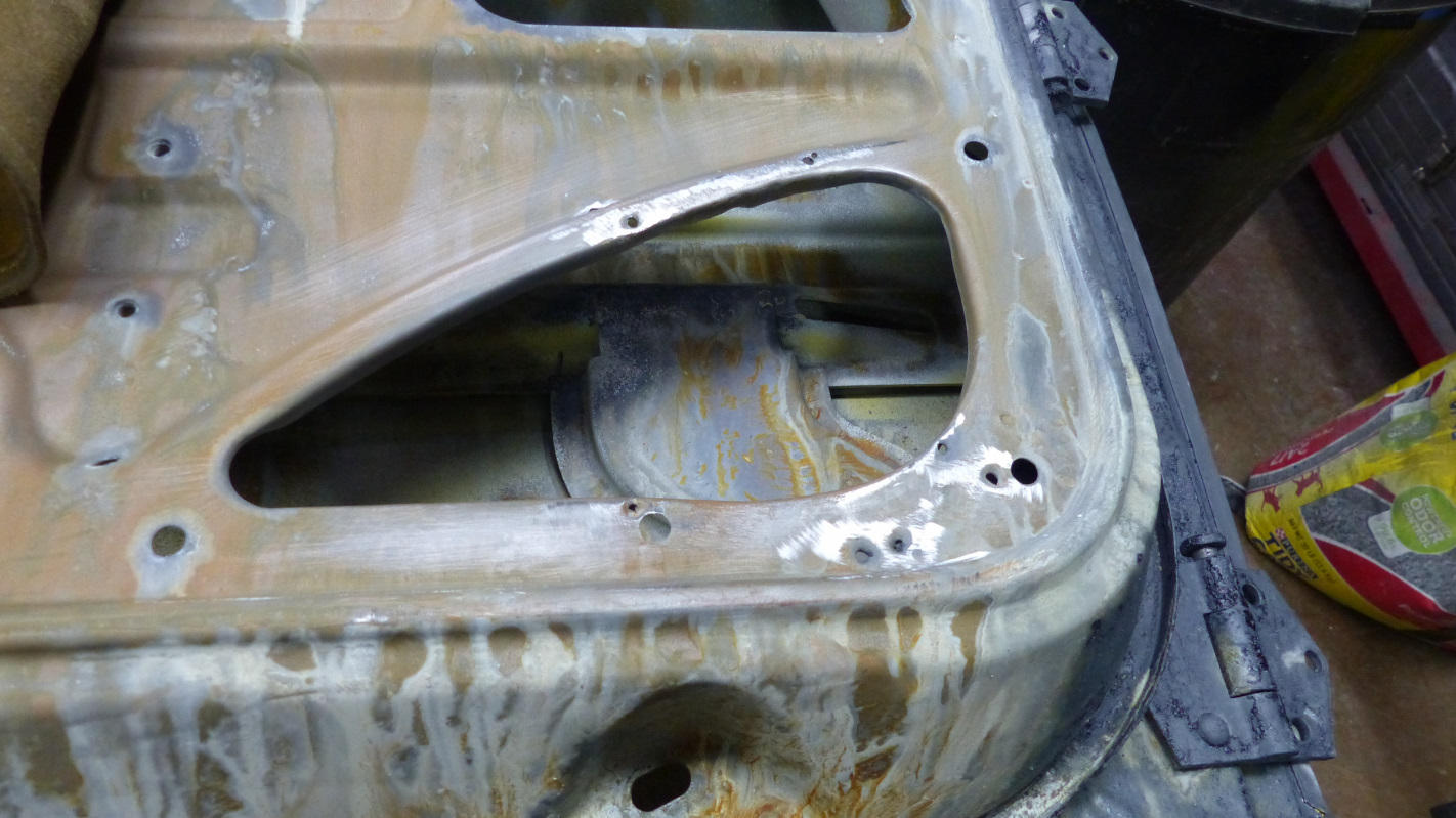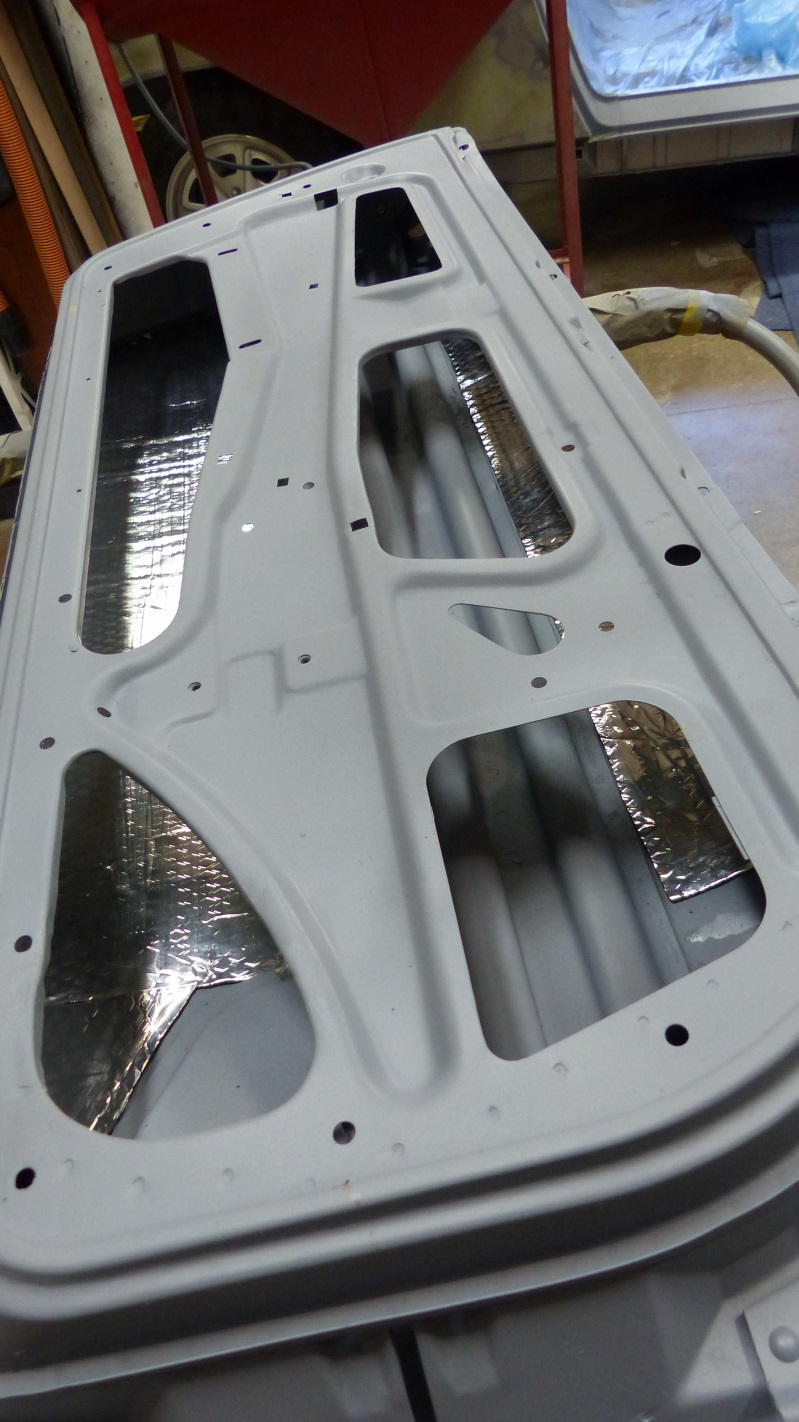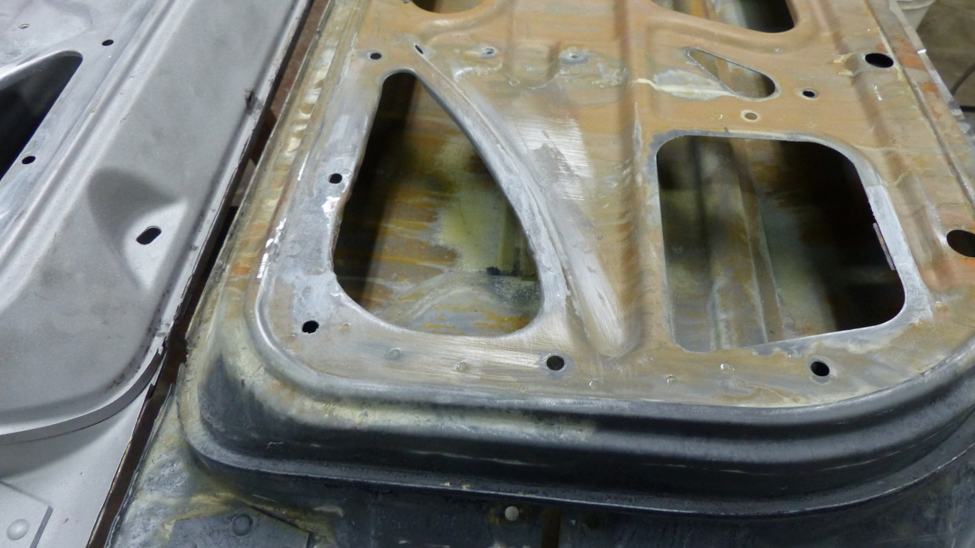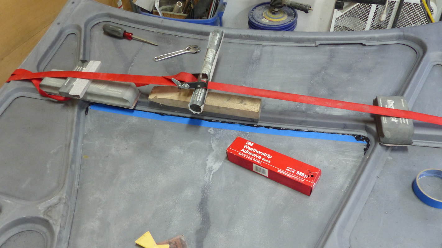 Well I guess this is project update day and I'm a little behind. Spent a lot of time getting deck lids and doors ready for primer. I think I started a mild controversy saying I was going to glue the frame to the hood skin on another thread. In reality, I was just trying to replicate what the factory did. They just glued down the central cross member what looked to be butyl caulk. 3M Weatherstrip Adhesive has very similar, if not identical properties. Plenty of stretch to allow the panel to move as needed.
