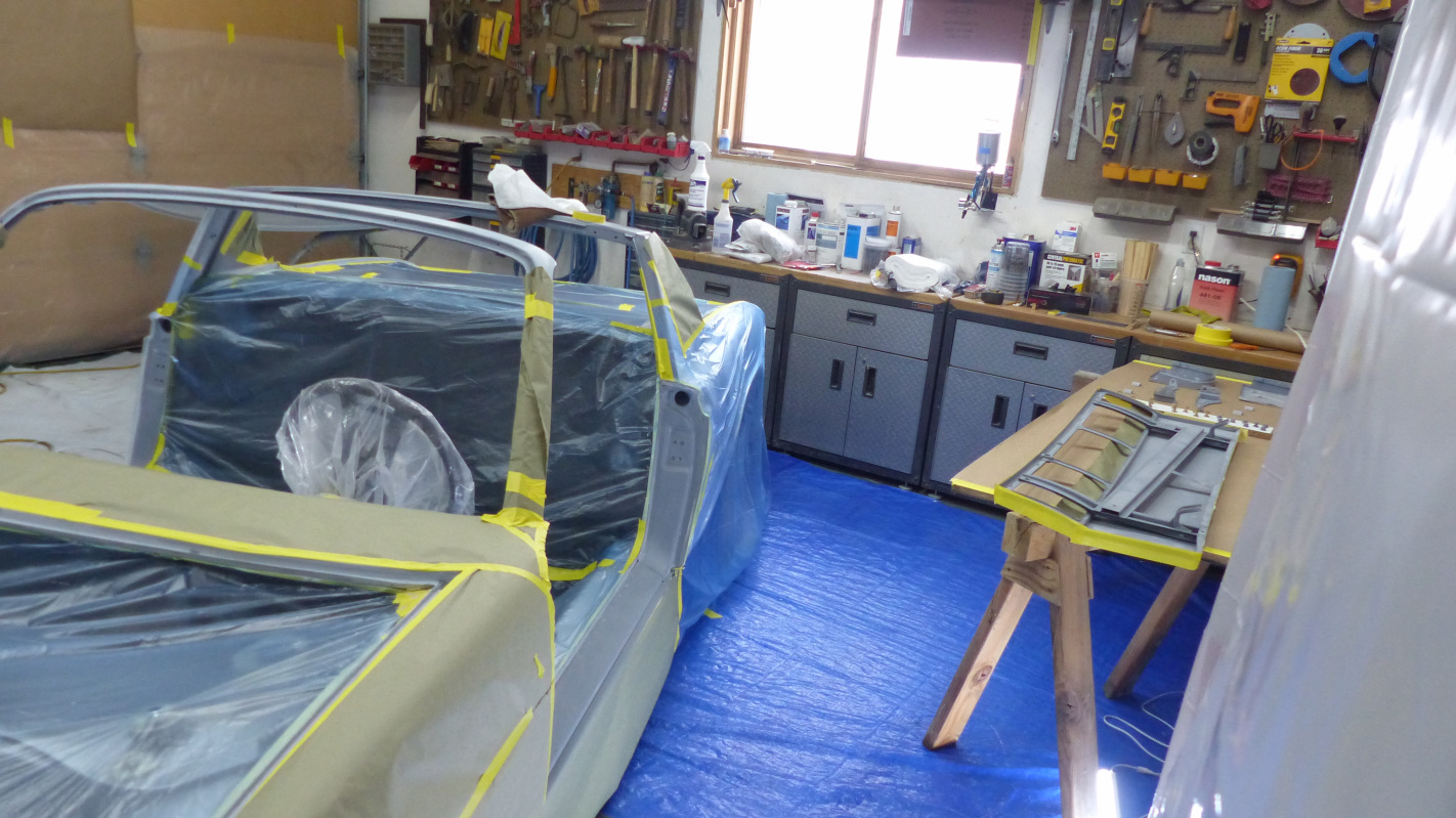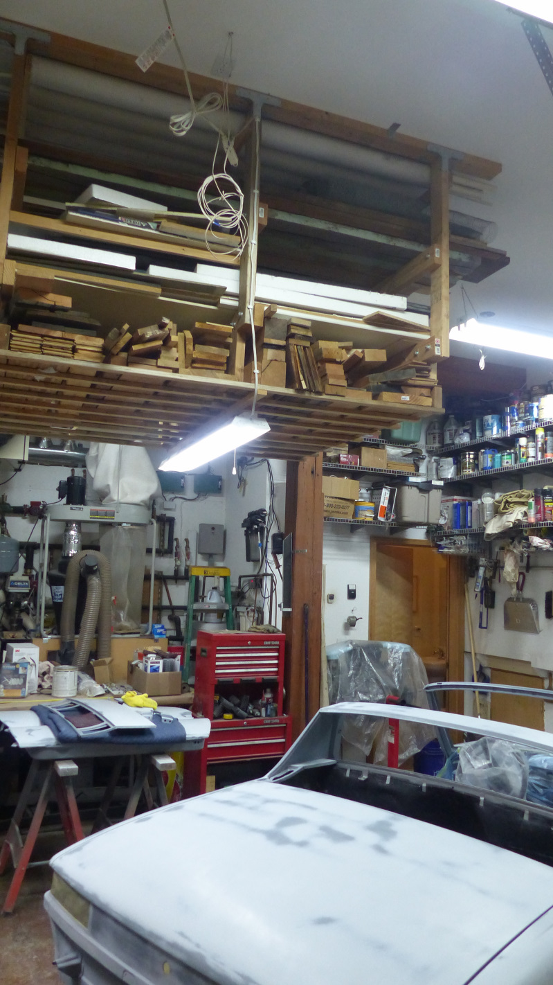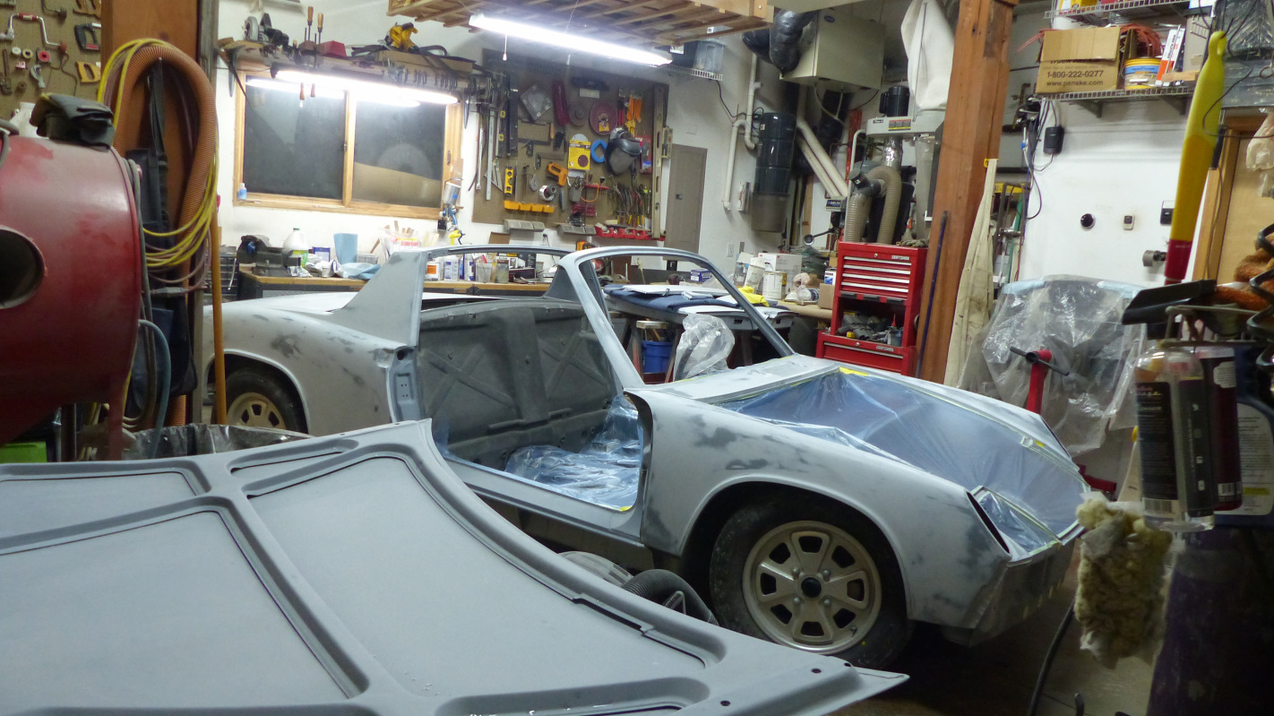 That's the motto of my home state of Kansas and aptly describes the last month of this project. It translates to: To the stars through hardship If I detail everything that has gone wrong, it would fill a book so I'll stick to the highlights. Winter came early and we have had cold and snow all through October, including a series of record breaking low temps. Our thermometer read 16 below zero at one point, flanked by sub zero temps in days before and after. Let's just say, the weather window for painting in the tent closed a good month early this year. The problems that mothballing the car project for possibly nine months before good weather returns are unacceptable, so I started looking for a way to paint in the garage. There were three large obstacles to this: Space, dirt, and not being able to park the DD in the garage during a period of monumentally shitty weather. The space issue needed to be tackled first. When we designed our house, we made the garage as small as possible with the intention of building a larger detached garage later and converting the current garage to living space. We have a timbe frame house, and the timbers in the garage eliminate a total of 13 feet of free span space. After a bit of measuring, it looked like could position the car diagonally across both car bays and have about 30" of clearance at four pinch points. Not ideal, but it might just work. I moved a bunch of shit around, re-positioned the car, and staged panels that would be sprayed off the car to test. Not great, but might just work. The worst would be spraying the interiors of panels off the car. Once that was done, they would be fitted to the chassis which would make things more workable. This shows just how tight and cluttered the shop was. Then I pushed the car through the snow out to the tent to give the shop a thorough cleaning. This garage has been a woodworking shop for 15 years, then a welding shop, then a bodwork work shop, plus contains the mechanicals for the house. It had every kind of dust and dirt imaginable, up to a quarter inch deep in some places. Best of all, a giant wood rack hanging from the ceiling to make the perfect dirt disperser for painting. Everything got vacuumed, blown with compressed air, hosed and scrubbed. That took two days. Then the floor was covered with plastic tarps and plastic sheeting was hung to try to create a clean space. Space was tight, but finally ready to paint panel interiors, door jambs, thresholds, and deck seal gutters on Saturday. It was not without incident. I got some trash in the front deck that had to be sanded out and resprayed on Sunday. As I was laying the last coat of clear on one of the thresholds, my elbow hit one of the workstand legs a door was on and knocked the gun forward causing a run. That one will be hidden but I'll fix it anyway. I got a couple of other runs on the jambs just because I'm stupid. Those will also get fixed. Overall, I was happy with the result but I guess I didn't take any pics. Attached thumbnail(s) |