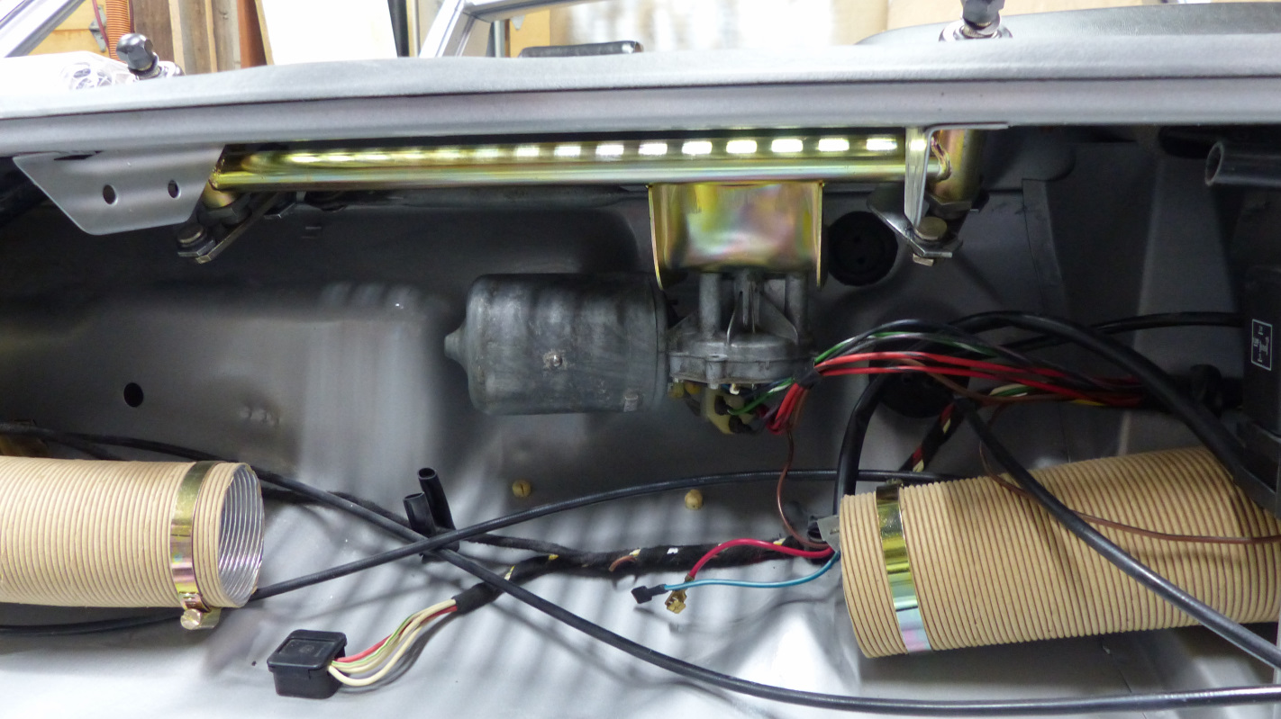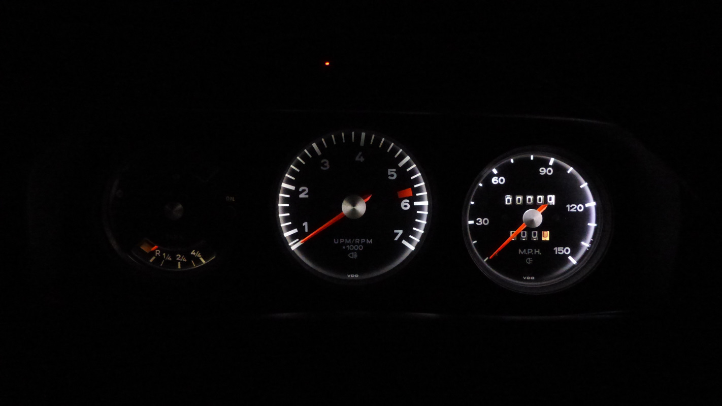 I also loose fit the carpet but no pic yet. I did glue one piece down up front though. Next was the wiper rack. I painted and installed the headlight mechanisms complete with the correct zip tie. I should have spent the weekend color sanding the body but just wasn't in the mood. Instead, I worked on wiring. Got the lower dash wiring done yesterday without much issue. Today, I figured I'd quickly wire up the instruments and maybe glue in carpet. Nope. Wiring instruments took a lot longer than expected. I'm pretty good at reading wiring diagrams but the factory diagrams are a little cryptic when it comes to the instruments. Also, here's a couple tips. Wire the instruments BEFORE installing the steering column if you can. It gives more room to work. I'm stupid, so did it the other way. Also, completely remove the background light harness. Then attach all the instrument wires. Then wire the background lights at the end. That keeps you from getting things tangled up and makes it easier to know which bulbs to put where so everything reaches. No, I was not smart enough to do it that way the first time. Biggest problem I ran into is that the 914Rubber instrument grommets simply did not work. The silicone rubber is too soft and the fit is too loose. Two of my guages simply fell out from gravity and would not stay in. The speedo barely stayed in but as soon as I hooked up the speedo cable, it popped out. I wound up chipping the paint on two instrument bezels swapping back to my original grommets. My originals are a little ragged, but not noticeable when installed. Most important, they hold the gauges firmly in place. Luckily, I did not crimp my instrument bezels down after replacing the lenses so they won't be too hard to pull off to repaint. Other problems were a couple space connectors that were brittle and got missed during the harness resto. A little awkward crimping in new ones with the harness partially installed. I also am missing one instrument bulb holder and a connector fell off another during install. I'll have to order replacements. With all the wiring done, it was time to have some fun. I don't have a battery yet, but I have this. And that led to this. I also tested the wipers and discovered I have a bad switch. I had bench tested the motor and knew it was good, but when I tested, I was getting intermittent at the intermittent and off positions. Slow speed where it should have been, and off with the switch in high position. I rewired the motor to by-pass the intermittent relay to rule out a problem there and found off and slow worked fine, but no high speed. Pulled the switch and discovered the high speed contact was broken out of its mooring and not making contact. I spent a lot of time fixing this, and I managed to get it working properly, but the switch is in really bad shape and putting it back together will requires a weirdly shaped rivet or suitable substitute. I think I'm going to call it a loss and try to source another one. Finally, The Terminator popped his eyes open under its own power for the first time in over 30 years! I thought about making a video but it seemed like too much work. "I'll be back..." |