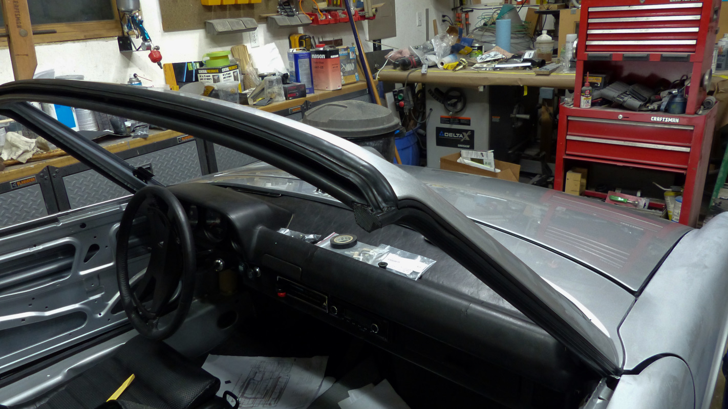 Put the upper and lower front targa seals in today. That sure is a treat of a job!!! Instructions would be nice. Even scouring old threads for nuggets of info left a lot of question. I had to slice slots into the upper corners to slide the aluminum tabs on the windshield frame tracks into. A little guidance on that would have been helpful, or just something saying it needed to be done. There was no other way though. Same goes for trimming the bottoms. For now, I just cut off enough for the door to clear. It looks like they need to be trimmed to mate with the triangle window seal when installed. Anyway, the car is starting to have a finished appearance with raw metal edge wrapped in new rubber. Never drove one without a torn up targa seal I don't think.