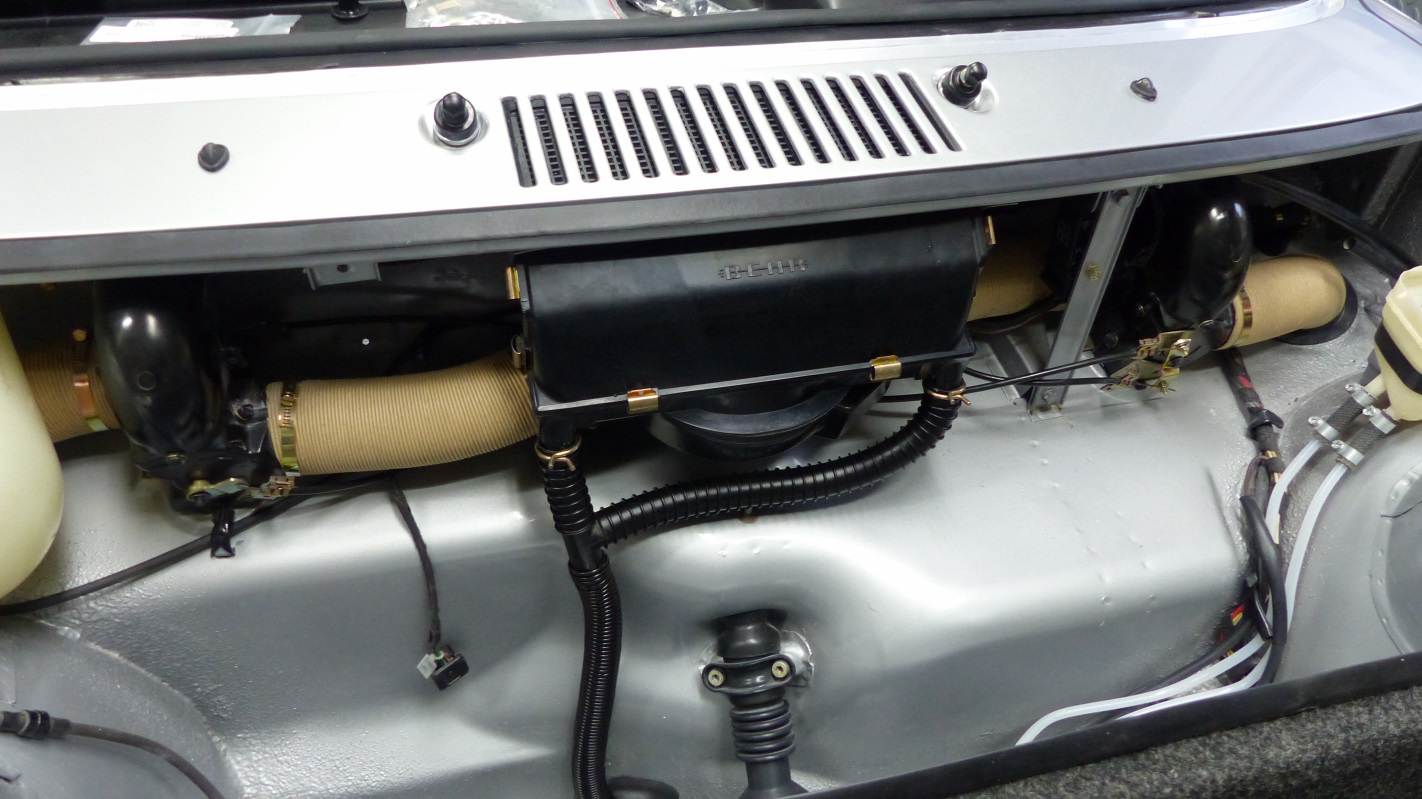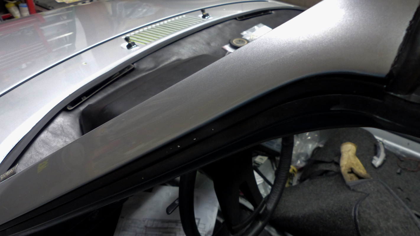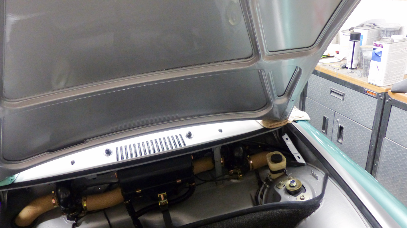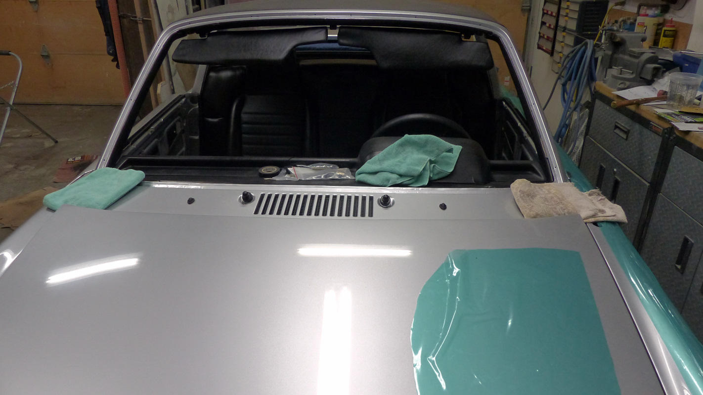The dreaded fresh air box actually turned out to be quite easy thanks to Ian's video of @914_7T3 's install. Don't hate me, but it only took about 30 minutes doing ot solo. Then I took it out and did it again. Piece of cake (IMG:style_emoticons/default/shades.gif) Next up was fixing the sand-thrus on the paint. The air brush was a mixed bag but got the job done. Here's the sand-thru on the roll bar. I barely got the base sprayed on this spot before the air brush clogged up. I think it was the metallics. Still, it got the job done. You can still see it if you look hard in the right light, but not bad. I decided to do a full reshoot on the door and fender. I had the paint and it gave me another chance to get it right... which I did. I also sprayed the last of the hardware. I also resprayed both headlight blinders. Of course I couldn't get through a day of painting without a fuch up. When I pulled the masking plastic off, I found the clear coat had dissolved the plastic and glued plastic, clearcoat, and base coat to the hood. (IMG:style_emoticons/default/headbang.gif) Luckily it sanded out but was nerve wracking because I had to sand through the base coat that got stuck on top - hoping that's what it was and not the final base coat under the clear. After polishing, you can't tell it happened. Now I have a paint job I can almost be proud of. The rear deck lid still has a bit more crap in it than I would like, but not bad. |