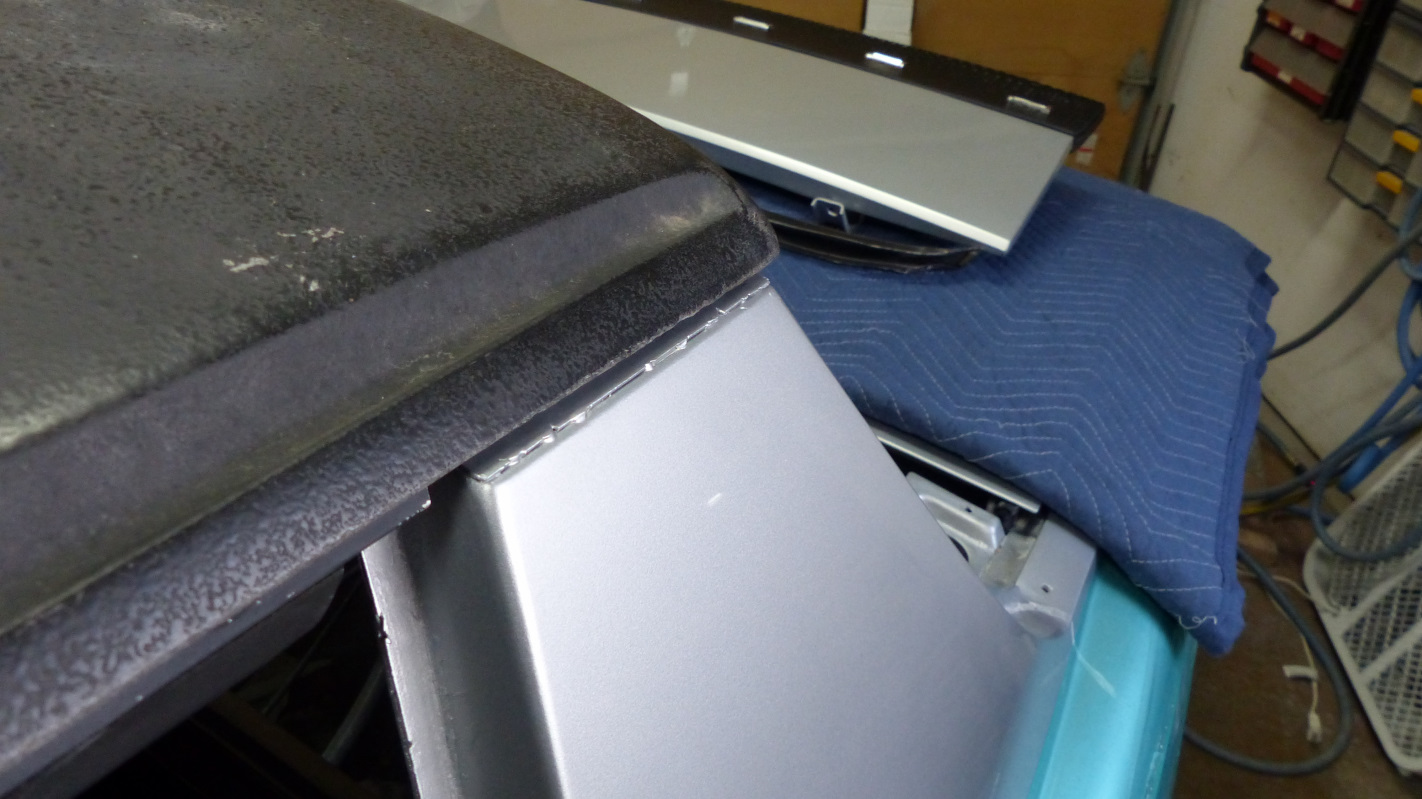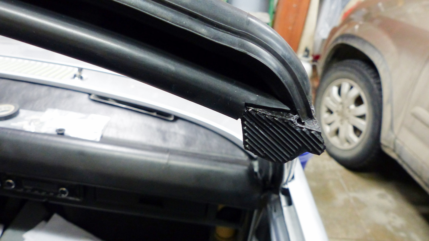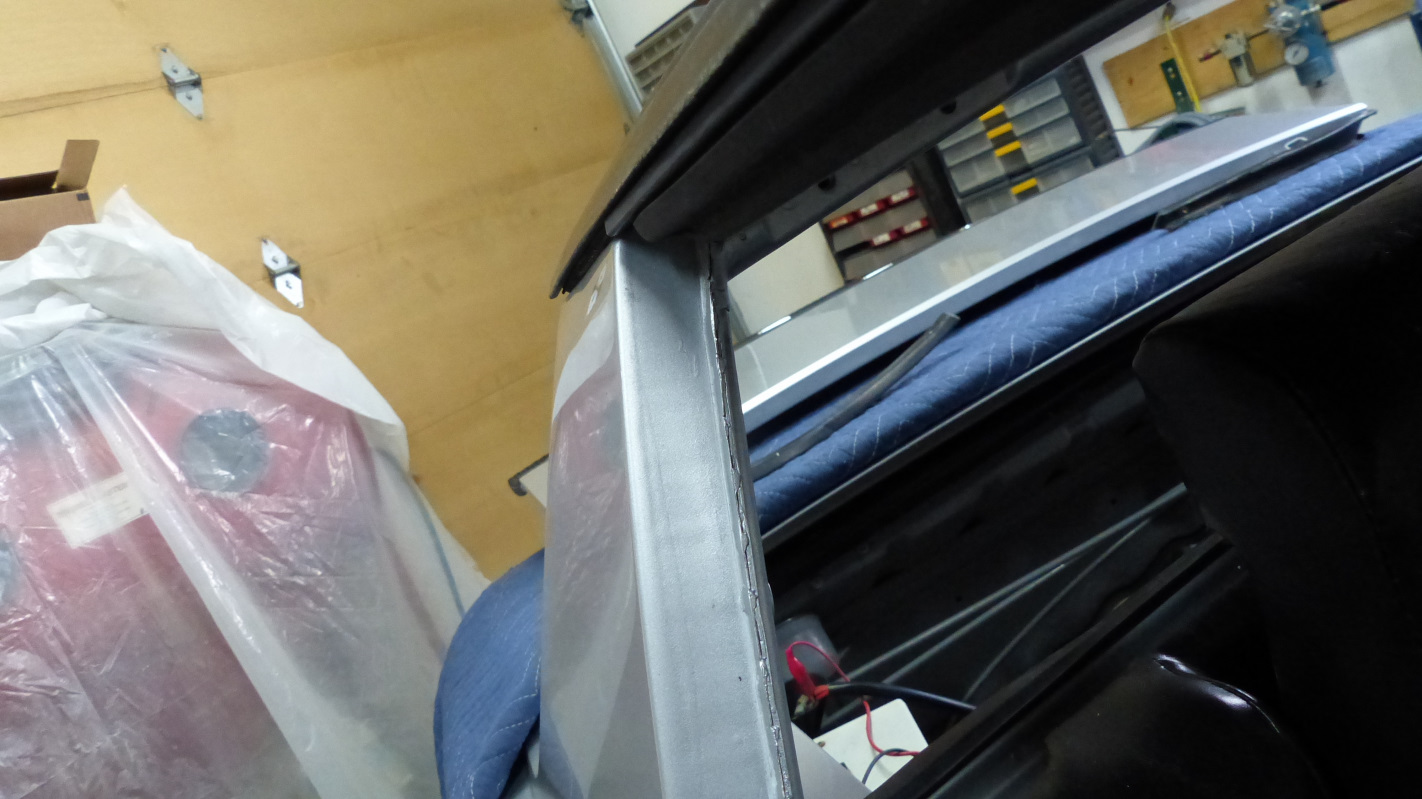 Did the passenger side first and managed to get it in without screwing anything up. Decided to play it safe on the driver's side and protect the frame paint and track with blue painter's tape. Wouldn't you know it, the tape lifted off some of my new trim paint. (IMG:style_emoticons/default/sad.gif) Now I get to mask that all off to touch it up. No way am I pulling that seal out again! I used a bit of weatherstrip adhesive on the corners to make sure I get a good seal with no leaks. The driver's side is wanting to roll just a little even after screwing the corner block in place. Hopefully a little clamp pressure overnight will let the adhesive set to hold it in place. Thought about putting the roof on to use as a clamp but this seemed easier. Got a little OCD trimming the union of the lower seal to the upper. |