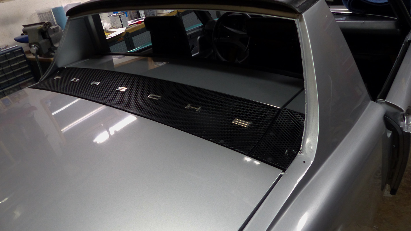 I originally planned to buy a plastic welder but the CSOB in me kicked in and decided that was an unnecessary expense. Instead, I used the hot knife I already have and a black zip tie to weld the crack shut. After sanding down to 2000 grit, the repair blends pretty well. I could have spent more time and gotten a perfectly invisible repair but frankly, it wasn't worth it. This little rubber sleeve is still available from Porsche. Thanks @914_7T3 for sharing your experience assembling the lid. Learning from you, I decided to install the letter on the grill BEFORE installing the grill in the frame. That gave me clear access to the letter posts. It also helped that the speed nuts have been superceded by a new part# and the new parts are easier to install. The are filled with a putty caulk and have a hex head that can be twisted on with a socket. Easy does it though. I just tightened until the caulk smooched out and the letter was held firm. Despite being careful, the nut twisted the tip off one of the "P" posts. It was already weakened by removal of the old nuts. There was still enough post to bite into and I added a drop of JB Weld just to make sure it stays in place. The poor bastard who has remove this will be cussing me, but I'll probably be in the grave by then. |