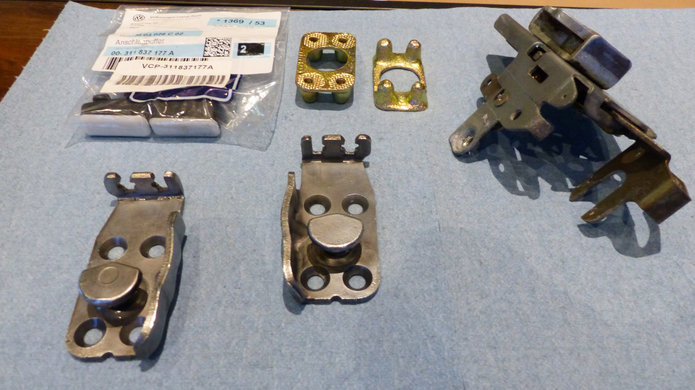 Brent - your solution to the door stays is something I’ve been pondering in my head for months. Thanks for posting how you solved the issue. I think I will copy your method exactly. It’s been a few months but I just spent some time catching up on your work - you’re flying along man. The car will be driving in no time. To echo what’s already been said, so sorry to hear about your furry friend. We just got our first pup a couple months back and I can’t imagine how hard it will hit when that day comes. @aggiezig I would suggest going a little oversized on the aluminum bushing. I think a 3/8" O.D bushing would be ideal and would leave more wall around the bushing. Thanks everyone for the continued condolences. Today was a particularly rough day for some reason but ended well. We put in an application to visit and maybe adopt a malamute in Boise but were informed someone was already in the process and the dog's adoption would be final last weekend. I learned today that the dog was adopted by a friend and colleague of mine who lives there and lost his malamute under similar circumstances as ours a couple years ago. I thought that was really cool and it kind of made my day to know the dog went to a great home and I may get to meet him yet. Some other small updates to catch up on where I am. I fixed the clock. It was the standard problem of the thermal fuse opening which is well documented so I want go into much detail. Like @Superhawk996 I could only find 138C low temp solder for sale and not 120C as speced on the clock. I'm sure that would be okay, but I noticed I still had pretty good blobs of solder on both sides of the thermal fuse so I decided to try just remelting the existing solder. It worked and the repair cost me only whatever electricity I bought to heat the soldering iron. Also like Phil, I found the old lubricant had gummed into a waxy substance which no doubt is why the fuse blew. After a bit of fishing in the Internets, I found a couple clock makers recommending brake cleaner as a suitable quick clean. It isn't the "right" way which is to completely disassemble the clock and soak in cleaner, but it should do. The only problem was that some of the cleaner seeped inside the clock face and I was worried it would mar the face or lens. Luckily, it evaporated without leaving more that a barely detectable trace. I may replace all the console gauge lenses with glass though because the plastic is yellowed and fogged. The clock has been running a bit slow so needs adjusted, but I'll wait until the clock oil I ordered arrives so it is properly re-lubricated before any adjustments. The other accomplishment was to get the door latches installed. I decided to just clean up the latch mechanisms and relubricate. I would like to replate them but they are a complex combination of bright cad and yellow cad pieces riveted together and I decided the chance of screwing them up was greater than the benefit. They cleaned up well. I did replate the catch posts and installed NOS rubber bumpers. here are almost all the parts cleaned and plated, ready to reassemble. One latch had already been installed at this point. The door posts installed. That vent cover is another story I'll tell later. Had a little scare when I couldn't get the pass door to shut flush even with the post adjusted all the way inward. I finally realized it was only closing to the first safety catch and the post actually needed to be adjusted outward. Once I did that, the door closed nice and flush with solid clunk that only German cars seem to have. I need to get the handles and other hardware sent to the chrome platers I guess. |