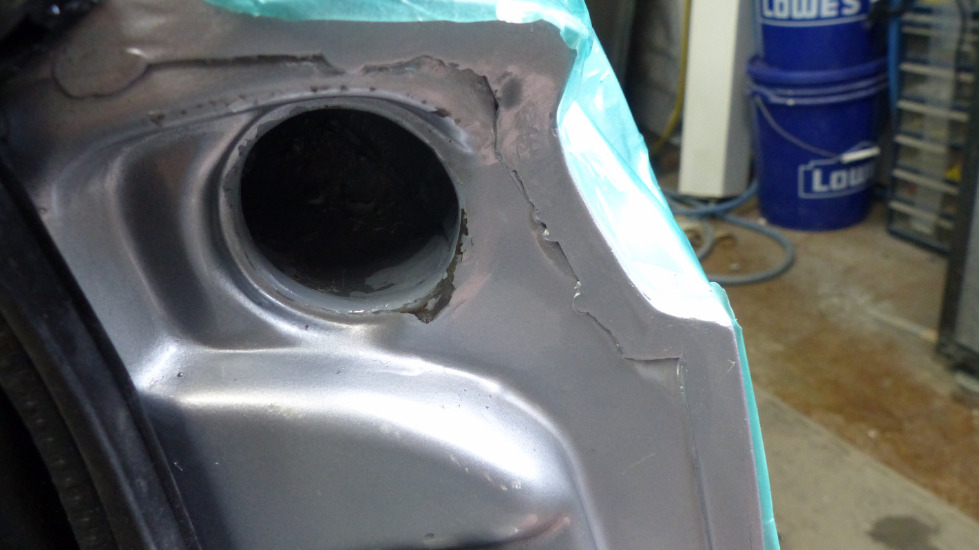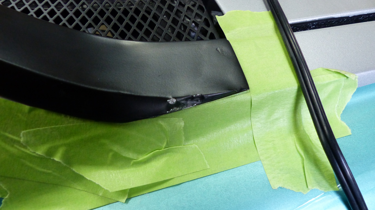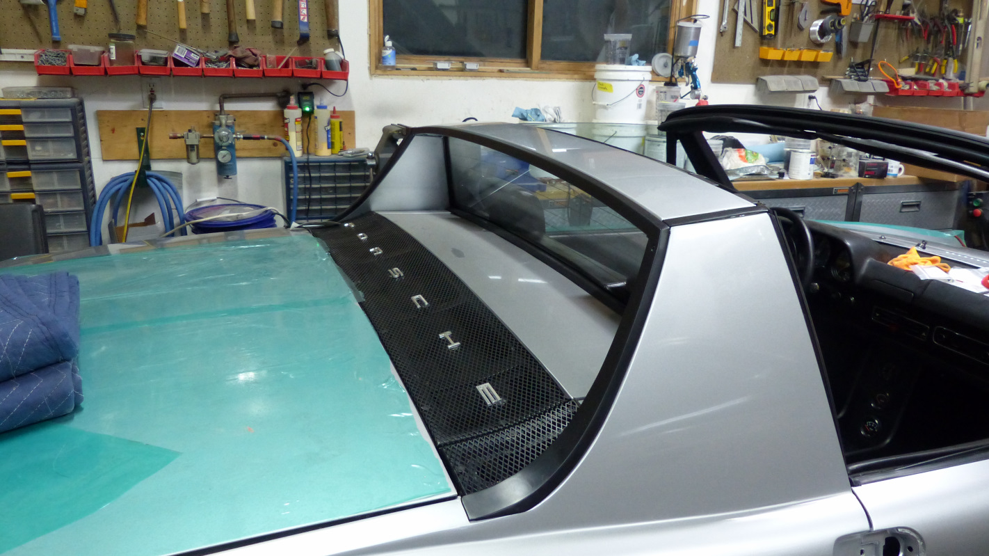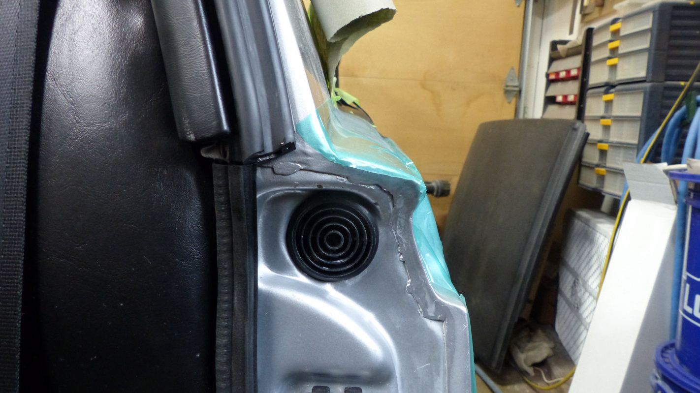 I went through the same drill as before but less of it. Luckily, the inside of the glass was pretty clean so it just got polished and not ground. I also discovered that after grinding with the fine discs, I could go straight to polishing with cerillic oxide and skip the two grades of Chemical Guys polish. Here's a shot showing the difference between medium and fine grind. Cussed the hell out of installing the quarter glass and window again. I'm glad that PITA job is done! Look closely. You are looking through the freshly ground and polished window (IMG:style_emoticons/default/shades.gif) Proof there is a window there. BTW, it took about eight hours for each side to adjust those windows, but they mate with the seals PERFECT. Couldn't be happier about that because I hate leaks and wind whistle. Here's another little item. I mentioned earlier that I'd say more about the fresh air outlet vents in the doors. Lesson learned the HARD way. When you install the RD door jambs, you REALLY need to fit those vent covers BEFORE painting the car. I discovered the lips needed to be hammered back to adjust the opening so the plastic vents would fit. There was not way to do that without damaging the paint. Here's the worst of them. At this point I have coated most of the damage with epoxy primer but remembered to grab the camera to show the chip flaked off that extends beyond the vent cover. I used a touch-up brush to dab on some base coat over the primer, followed by clear. Then the cover pops on. Sure, you can still see it if you look for it, but it won't be noticeable, and if anybody does, I'm going to call them a dick. |