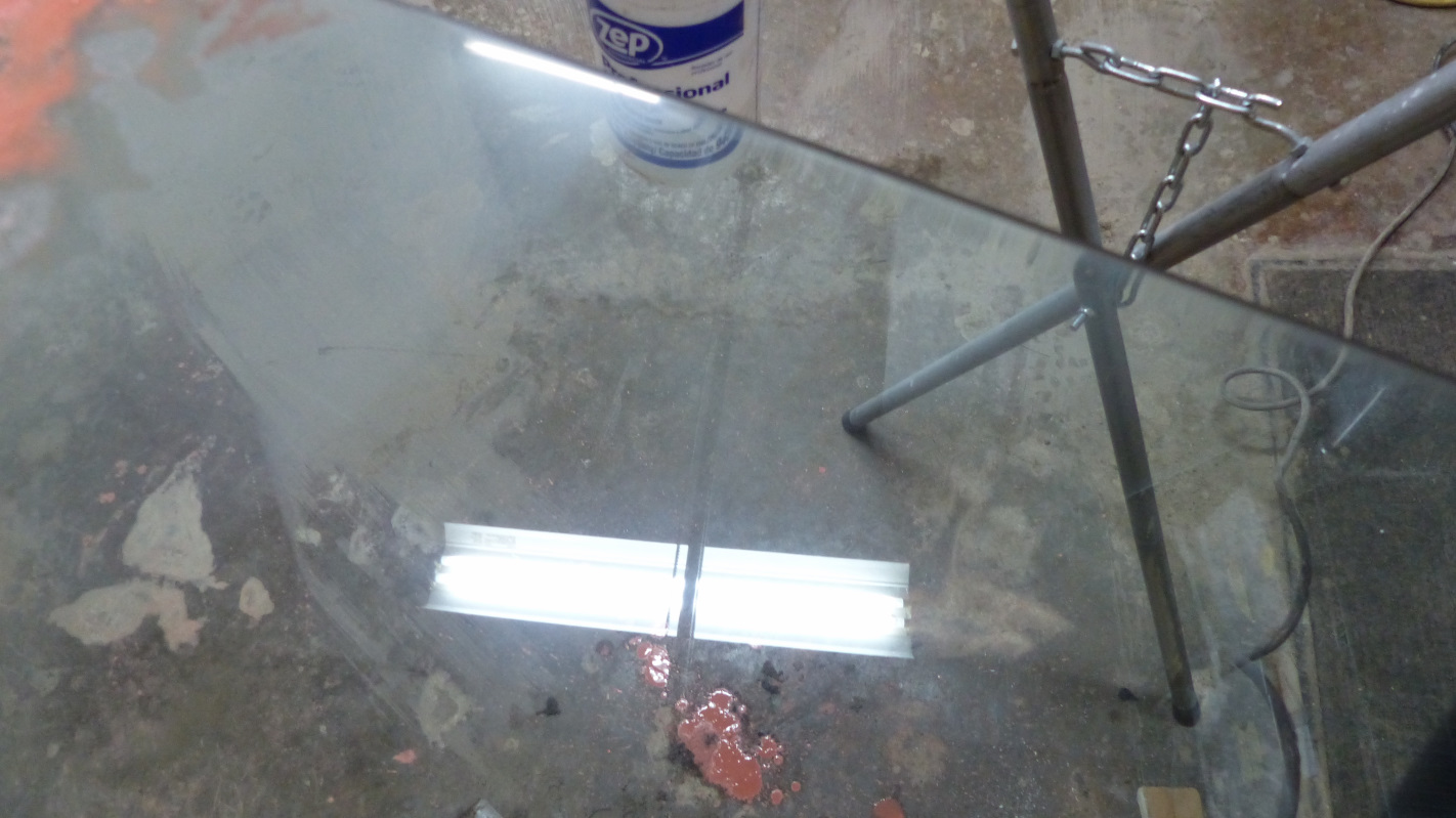 Next item, the driver's window. This one was in a lot better shape than the passenger window, but still needed some help. There were a lot of deep scratches along the top of the glass. There were also several long scratches in the middle of the view field from rolling the window with gritty shit on the scrapers. Couldn't get the long scratches to show in photos but they were pretty nasty. Here are the scratches along the top.