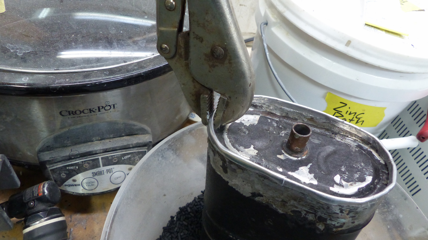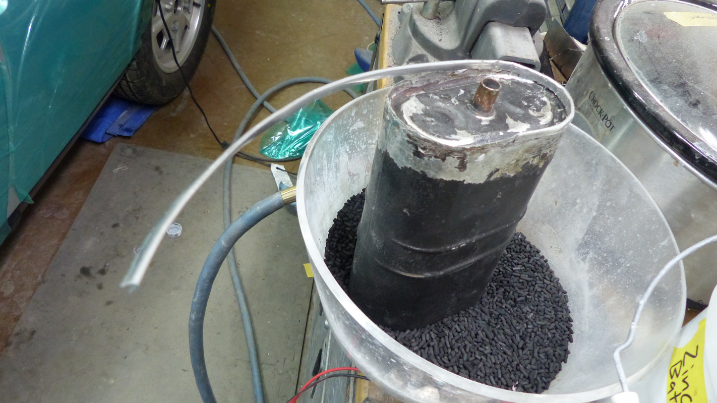 Over on the Samba is a thread on refurbishing the early metal charcoal canisters by drilling a hole in the two-port end, dumping out the old charcoal, refilling with fresh and installing a plug. Sounds simple enough. DON'T DO IT. It will ruin your canister. Ask me how I know. (IMG:style_emoticons/default/headbang.gif) Okay, I don't give up that easily. With a ruined canister in hand, I figured I might as well figure out how to open it up and see what is inside. The dissection was pretty brutal, but it led me to a somewhat easy way to refurbish these early canisters. First, let's look at the guts and why just drilling a fuching hole in one end is a stupid-ass idea. On the right is a stack of screens and filters that now have a nice 1-inch hole in them because I stupidly believed what I read on The Samba. The plastic plug is what will be used to plug the now unnecessary hole. On the right is why drilling a hole is a stupid idea. A stack of a wire screen, coco fiber filter, and perf metal screen all spring loaded against the cap to hold the carbon pellet charge nice and tight. Take a guess what happens to that spring-loaded stack when you dump the charcoal out... That's right. It rattles around loose inside a can and you are fuched. Alright, how do we fix this turd? Well, the can ends are crimped and rolled and there isn't a clean way to unroll them. So here's what you do. Flip the thing over to the single port, spring-loaded side and grind the edge off the rim. I used an 80 grit disc on an angle grinder and it was quick and easy to grind away until the layers of metal separate. You can see the seam opening opposite the grinder. Now you can empty the can, replace the screen stack in what is now the bottom and refill with fresh charcoal. I tried to find special vapor grade charcoal but could only find it for sale in bulk, so I used aquarium charcoal. The three pound bag I bought was not quite enough so I topped off with some of the original charcoal. You want it about a half inch below the lip of the can. This pic is before topping it off. Reassemble the screen/filter stack on top of the charcoal and put the springs on with small ends up. There are indentations in the lid that hold them in place. Then put a generous bead of sealant around the lid flange. Make sure it is gasoline resistant. Yamabond worked really well. Press the lid in place until the edges are flush and clamp until the sealant sets. Now here's the trick to finishing it off and also the tricky part. Bend a strip of thin (26 gauge) metal in half and cut it to about 1/8" wide. Open up the crimp so you can get it on the can edge. Run a file or sandpaper over the cut edges to smooth them or your likely to slice the shit out of yourself in the next step. Now you have to work the strip onto the ground edges of the can and crimp it on as you go. This would be easy if the strip was preformed into a flat oval to match the can but mine was all twisted and deformed from the cutting and had to be formed as I crimped. Bending the strip around the ends was the hardest because the groove closes up and has to be wedged open with a screwdriver blade frequently. Eventually the strip is formed and crimped tight to make a nice finished edge. The only thing left is to paint it. And wall-A, a nice refurbished early style charcoal canister. BTW, if you didn't follow the how to make orange peel thread, I found Eastwood Rubberized Rust Encapsulator does a nice job of matching the original finish on the canister. (IMG:http://www.914world.com/bbs2/uploads/post-20845-1587600965_thumb.jpg) |