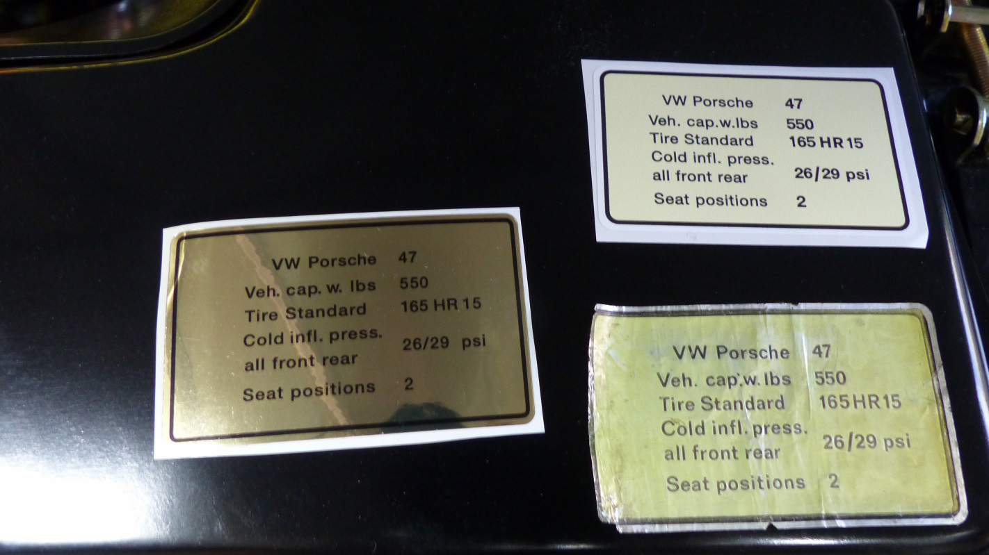 My leaning is with Phil on re-using the original. I have cleaned the old adhesive off the back so it will lay smooth and just need to rubber cement it in place. I already did that with the octane sticker. (IMG:http://www.914world.com/bbs2/uploads/post-20845-1543040621_thumb.jpg) A pic of where this started. |