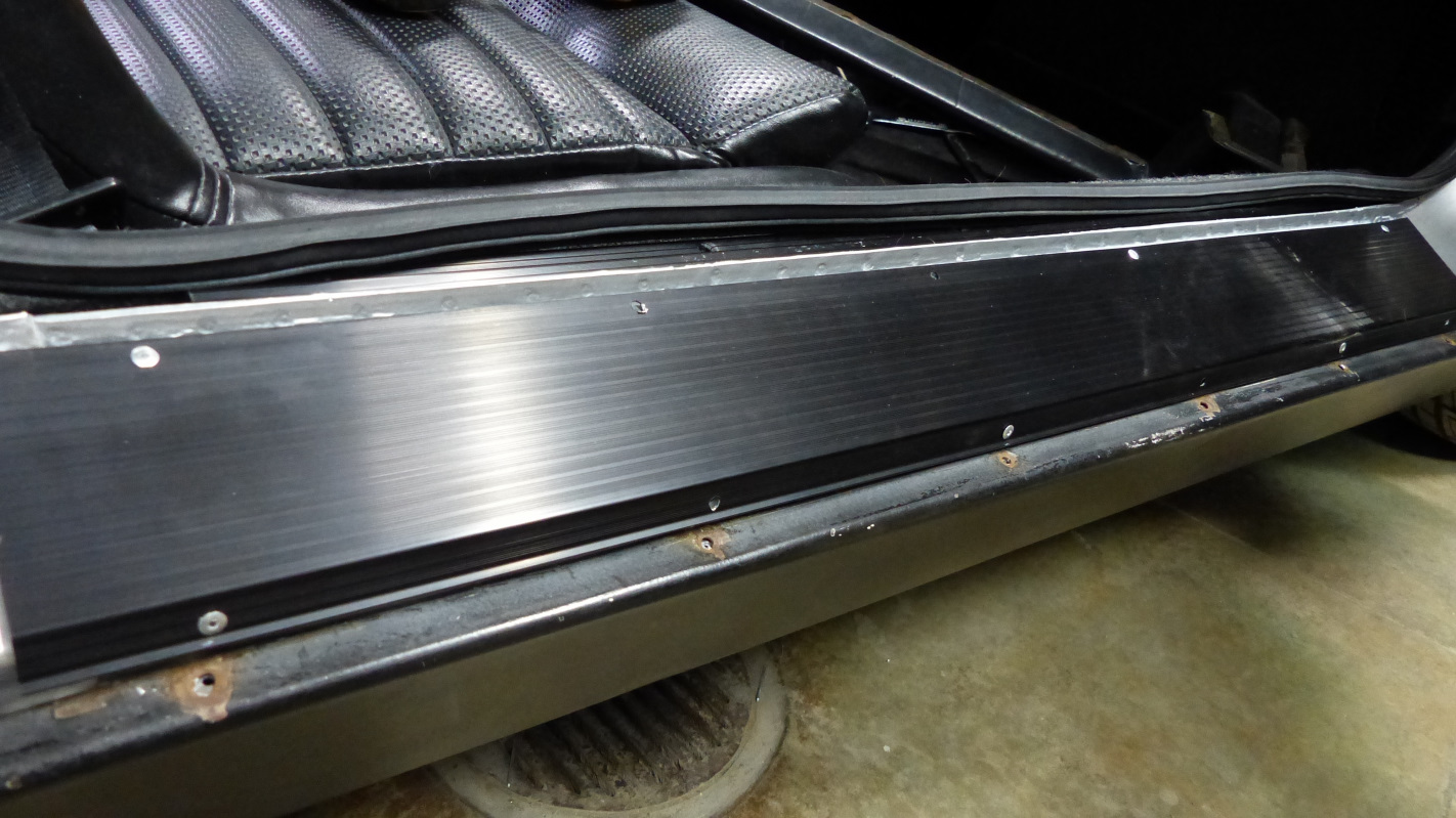 Quick one here for the dumbass files. I forgot to predrill for the threshold plates before painting the car, so YIPEEE I got to drill into new paint. As with all reassembly tasks, it got more involved than expected. I thought I could just use the plates as a template to mark the hole locations, drill them all out, and then install with the special plastic rivets. Not so easy. There is enough curve to the thresholds and stiffness to the plates that you can't just press them down to mark the drill holes accurately enough. Instead, I drilled the first hole and used a pop rivet to temporarily fasten the plate on. Then drilled a couple more holes. Then a few more pop rivets as needed to pull the plated down against the threshold until all the holes could be drilled accurately. Kind of nerve wracking because you have to worry about not ruining the new paint on the car, or the nice anodized finish on the plates. It's also not easy to center punch the hole locations with the plate in the way so fighing drill bit creep too. Not the worst job, but not fun.