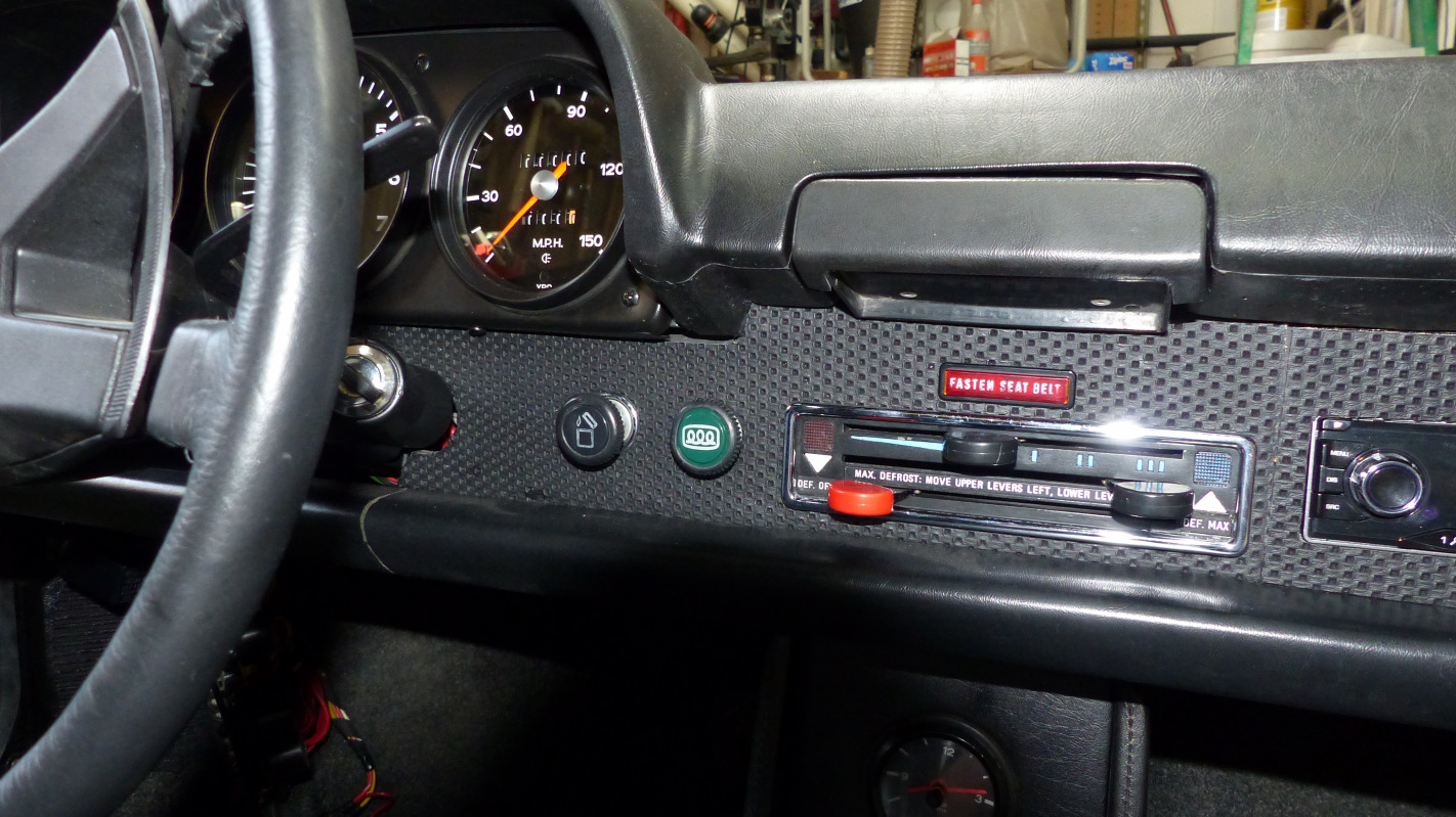 The last few days have been Ground Hog Day and it all started when @914_73 posted a thread about plugging a hole in the dash vinyl. I pointed that according to Dr. Johnson's restoration guide, his rear window defrost switch was in the wrong place. Jeffrey countered by saying the restoration guide was wrong and produced what I suspect was a doctored photo from the owner's manual proving his position on the position. Most impressive is that he somehow managed to doctor my personal copy of the manual (IMG:style_emoticons/default/happy11.gif) That sealed it and I ordered a new roll of basket weave vinyl from 914Rubber. I'll admit the defrost switch location tucked under the steering wheel was awkward and looked awkward too. Makes much more sense to have it out to the right of the cigarrette ligher. So the old new vinyl was stripped out but it is never as simple as that right? If assembling a 914 from scratch is fun, doing it four or five times is even more fun, right? (IMG:style_emoticons/default/blink.gif) So while I was there... My vent control panel was not sitting as flush to the dash face as i thought it should, so I took the opportunity to readjust. Sure enough, I was able to get it to nestle into the opening better. This pushed the control unit back about 1/8" which put compression pressure on the control cables. Well... that meant THOSE needed to be readjusted. But wait, you can't access them with the fuel tank in place so THAT came out again for the nth time. This do over gave me a chance to fix something else that was bugging me. My knee pad is missing (or maybe never had) the bright trim strip between the pad and dash face. The left the raw edge of the vinyl showing in spots where the pad meets the dash. This time, I ran the vinyl about 1/4" long on the bottom so it runs under the knee pad. I like the look without bright trim but does anyone know if all cars came with it? Oh, and the defrost is not in its correct location. (IMG:style_emoticons/default/rolleyes.gif) And the gas tank buttoned up again. It was unanimous on re-using the original decal so there it is. It was work, but thanks to Jeffrey, my Marathon(ish) car is in better shape. The interior is close to being permanently buttoned up. 914Rubber did not send a replacement for the missing nylon dash top stud which is frustrating. I'm waiting for some nylon M8 bolts to arrive from ebay before I can install it followed by final install of the radio. The only things after that are needing the subwoofer box we are being promised from 914Rubber and a couple more bonus projects I've been contemplating. (IMG:style_emoticons/default/beerchug.gif) |