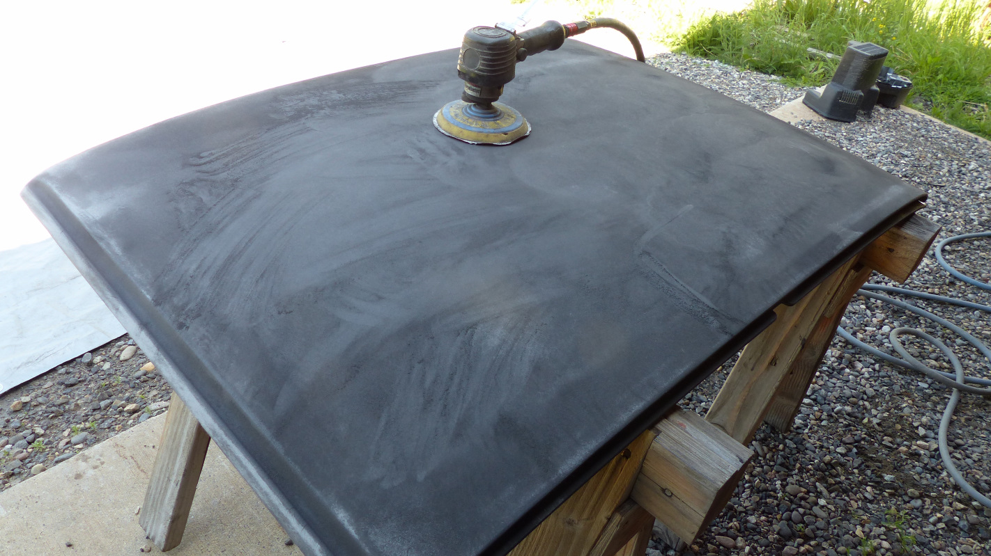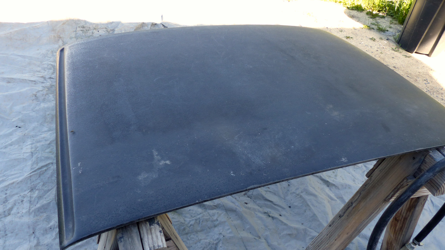 Now, I know about the body schutz treatment to restore the texture of the targa top, but after I saw McMark's method using gelcoat, I though, "hey, that looks like a lot more work. I think I'll do that!" Okay, there's more to it. No offense to those who use body schutz. I'm sure it looks fine, but that strikes me more as creating a faux finish than a faithful restoration of the top. So... I set about learning how to spray gelcoat. But first, I had to prep the top with a thorough scrubbing with Dawn dish soap followed by 2-3 wipe downs with dewaxer and silicone remover. Then I broke out the DA. After sanding, I filled a few hairline cracks around the edges with 2K glazing compound. If there was larger damage, I would have used reinforced filler but I think I'll be fine. Here it is ready for gelcoat and here's my kit: It includes the gelcoat, MEKP hardener, 2K urethane reducer left over from painting the car (MEK can be used as reducer but several forums said urethane reducer was better), wax additive for the final coat (that seals the coat from air so it cures hard), and acetone for cleanup. Mark mention flattening agent in his post but couldn't remember what he used when I asked. All I could find online was hella expensive and I could find no info on mix ratios. My local auto paint shop just gave me a blank stare when I asked. Forums said you could use talcum powder so I gave it a try. Testing was done WITHOUT hardener so I didn't waste anymore product than necessary and easier cleanup. Three things I needed to experiment with; sheen, thinning, and texture. For the spray gun, I drilled out my cheap HF gun to 2.0mm following this vid. It worked great but when I sprayed my first test on cardboard, I wasn't getting the size of droplets I wanted and it was spraying on too smooth. I decided to try drilling out the gun just a little more. That was the perfect solution.... for ruining the gun (IMG:style_emoticons/default/dry.gif) Yes, there is a limit to how big you can go. I was about to run into town to buy another cheap gun when I remembered my old ancient pressure pot gun that had gathered dust for 35 years. Why buy a new gun when I could ruin another? I stuck to the 2mm size this time and it worked. I still wasn't getting the texture I wanted on the cardboard. Turned out the problem was the cardboard that soaks up the gelcoat and flattens it out. The secret to the texture was to have the pressure as low as you can go and still push the mix out the nozzle, and hold the gun back farther than normal. I experimented with a couple mixes with talcum powder to flatten the sheen but in the end, the sheen straight out of the can looked closest to the original. Just to be sure, I mixed a couple slugs with hardener to test if it hardened with the same sheen. Unflattened is on the left. I sprayed two coats thinned about 10% to get base cover and then quit for the day because too many bugs were landing in the wet gelcoat. Better to spray in the morning when it was too cool for most of them. After calling it quits, the wife caught me napping. Next morning I finished the spray and let it bake in the sun for the afternoon. Again, the final coat got wax added to seal out oxygen which inhibits hardening. I thinned the texture coats about 8% but should have stuck with 10. When the gun spit big drops, they didn't flatten out and had to be sanded off after things had set. I started with very light sanding with 400 and worked to 1500. Overall, I'm happy with the texture. I think it is just a little tighter than the original but I think most people would have to see it side-by-side with another top to notice. Be my guest, but I'll call you a dick (IMG:style_emoticons/default/rolleyes.gif) I think I'm going to do just a bit more block sanding to knock those big drops down a little more. They stand a little proud of the rest of the surface enough you can feel them and they catch the light. Other than that, I'm pretty happy. I think this is a better way to restore the top than body schutz and also happens to be cheaper if you use Wurth, and especially if you have to buy a schutz gun. Would I do it again? Probably not. The reason is because now that I've spray Upol Raptor and gelcoat in different applications, I can tell you that the surfaces are indistinguishable in terms of hardness and feel. I think you have more control over the texture with the Raptor gun also. I'm pretty positive you could get the exact same result spraying Raptor but the Raptor is easier and about the same cost. I think it would be the best of both worlds. The ease of schutz with the finish of gelcoat. Next installment will be refurbishing the other side of the top. It's done... almost. I'm just too tired to post tonight. |