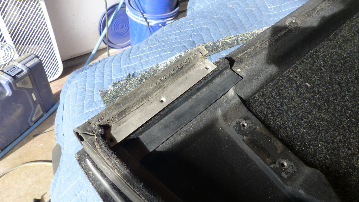 I left off promising an update on refurbing the bottom side of the targa so here we go. First was installing the Perlon headliner. None of the three 914s I've owned still had their headliners so this is super cool to me. I have always assumed it was the lack of headliners that kept my teeners from riding quiet as a Caddy (IMG:style_emoticons/default/lol-2.gif) Next was the rear targa seal. Some of the screw holes in the targa top were wallowed out so I filled them with JB Weld and redrilled them before the install. There is a trick to installing the 914Rubber piece. The original seals have metal strips embedded in the sides. The 914Rubber piece doesn't. You have to cut the strip off your old seal and use it to clamp down the new one. Honestly, it would be nice if new strips were included with the replacement seal because they are sharp as shit when you cut them off. After a trial fit, I removed it to apply a good bead of 3M Weatherstrip adhesive. And here's what the strip/clamp looks like installed. Next was installing the side seals. I used a lotta glycerine lube and pulled the seals through the channels using needle-nose pliers to get a grip. Here's a shot with all the seals and refurbished latches and latch blocks attached. |