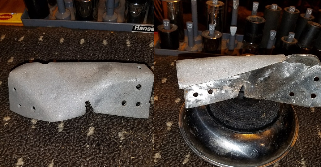 I spent a little time each evening this week struggling with the second gusset on the suspension console. Cary lent some much needed help figuring this out on another thread. The key was this pattern diagram that he posted. (IMG:http://www.914world.com/bbs2/uploads/post-1608-1517412830.jpg) I scaled that image up to as close to actual size as I could get, and printed it out to make a folding template. (IMG:http://www.914world.com/bbs2/uploads/post-20845-1517446019.jpg) The pattern was for the driver's side, but it was simply a matter of reversing the bends to fit the passenger side. (IMG:http://www.914world.com/bbs2/uploads/post-20845-1517446067.jpg) Despite being 12 gauge steel, it didn't take long to bend the piece into close to shape using only a couple of BFHs, a vice, and an anvil. Just a little trimming and taps with a hammer, and this would work perfectly well. (IMG:http://www.914world.com/bbs2/uploads/post-20845-1517451295.jpg) Kudos to Super-In-Law and Cary for designing this piece so it could be formed using minimal tools. That said, I have a knack for creating extra work for myself. The piece would have worked perfectly fine as a gusset for the console, but it didn't match the contour of the other side. Who would notice? Nobody! Not a damn soul.. except me. So I took another stab at it. First I made a new template using the driver's side as a pattern. Then I hammered most of the piece back flat and traced the new template onto the old part to trim it to the new profile. ![]() The new bend lines were tighter and more complex, so it was a bitch getting that thick steel to submit. I wound up making one relief cut to get the job done. By the time the piece had been shaped, then flattened, reshaped, cut, and shaped some more, it looked like it had been mauled by a grizzly. ![]() Finally, it was ready to go on. I tacked it into place and then tapped in the final shape and.... Oh hey, speaking of bears, how about a cute little black bear cub in Jellystone last spring? ![]() Or maybe the whole family? ![]() Now where was I? Oh yeah, I was about to show this. (IMG:style_emoticons/default/shades.gif) ![]() Funny how excited we can get over little pieces that nobody will ever notice. |