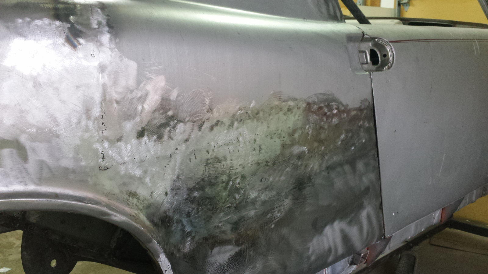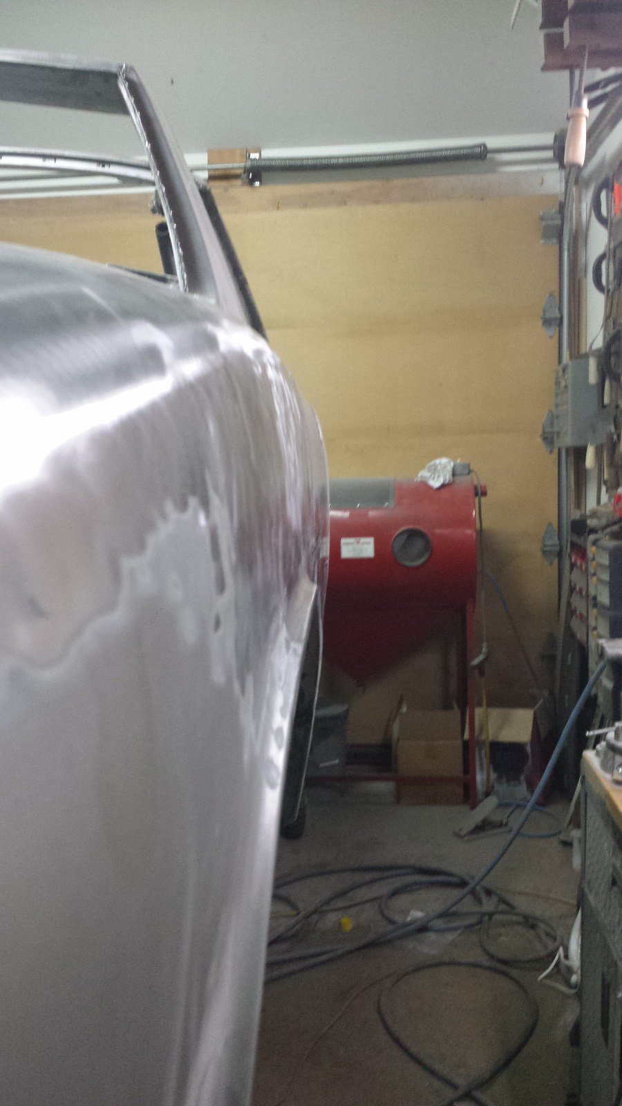 Looks good.. Was just talking with a world class triumph car restorer this morning about metal finishing. He echoed my concerns of thining the metal too much by making the weld disappear and said allot of times you take a panel which might be 18 or 19 GA and thin it to 22 or thinner in spots and thus cracking can occur.. I think the goal is to get as much warpage as possible out with the majority of the weld removed and let filler do the rest. The quality is so much better then what it was 20 years ago.. Your car will finish very nice..