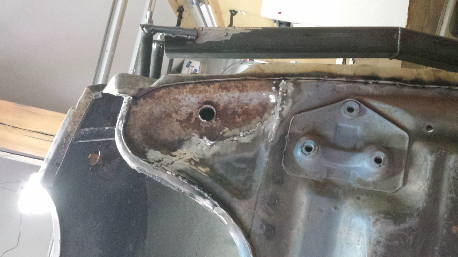 Hey Brent, I am enjoying the thread. Keep up the great work. Regarding your quarter panel work, I am struggling with the idea of notching my panels to get to the hell hole and sail panel (minor) rust which you have done or just removing the panel all together which would allow me to get behind and into the hell hole and sail area unencumbered. Perhaps it is just a trade-off in time between notching the panel or removing it all together. Would like to hear if you considered complete removal previously and if you had to do it again would you do the same thing? Thanks, Kevin Hi Kevin, I did briefly consider removing the whole panel but not for long. If you use the RD sail panel patch, then you are going to have to run a long butt seam regardless. Cutting the quarter where I did only adds about 6 inches of extra seam. Now if the rust on the sail is minor enough that you only need small patches without replacing the whole sail piece, then removing and replacing the whole quarter is a no-brainier. Much easier to cut spots and re-install with plugs than trying to quilt pieces together. That was my thought process anyway. |