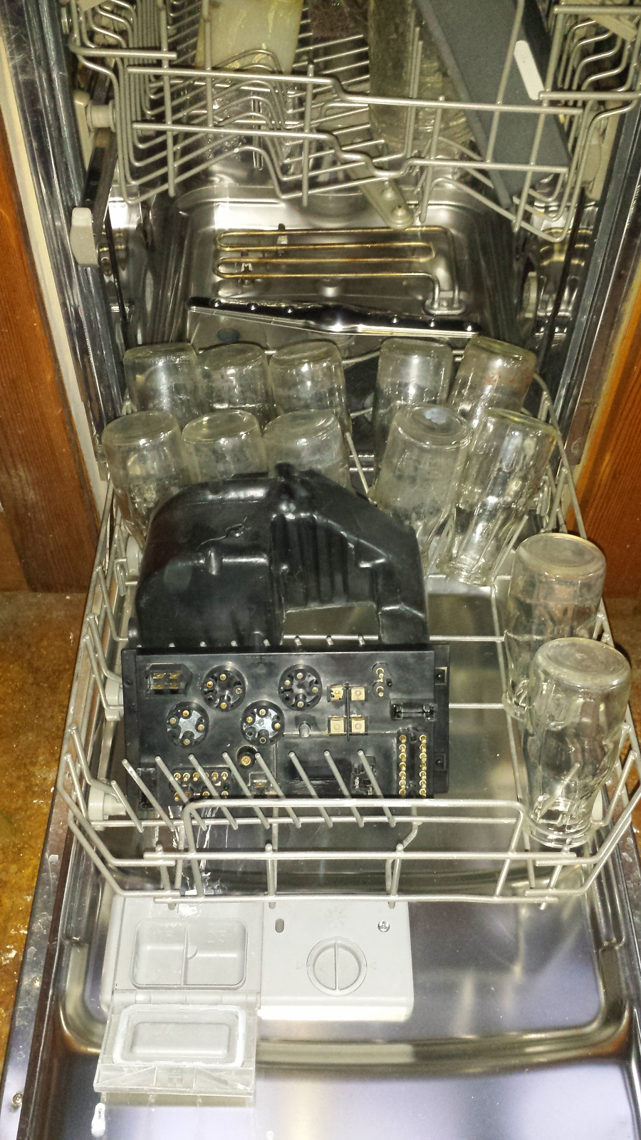 ![]() First a scrubbing alongside fruit fly vials in my personal dishwasher. And you thought washing car parts in a dishwasher was weird (IMG:style_emoticons/default/rolleyes.gif) Chipped out the old cracked tar, cleaned traces with contact cleaner, scrubbed with isopropyl alcohol, filled holes with silicone. I think you could power a small city through those traces. Massive. and sealed with epoxy potting compound. |