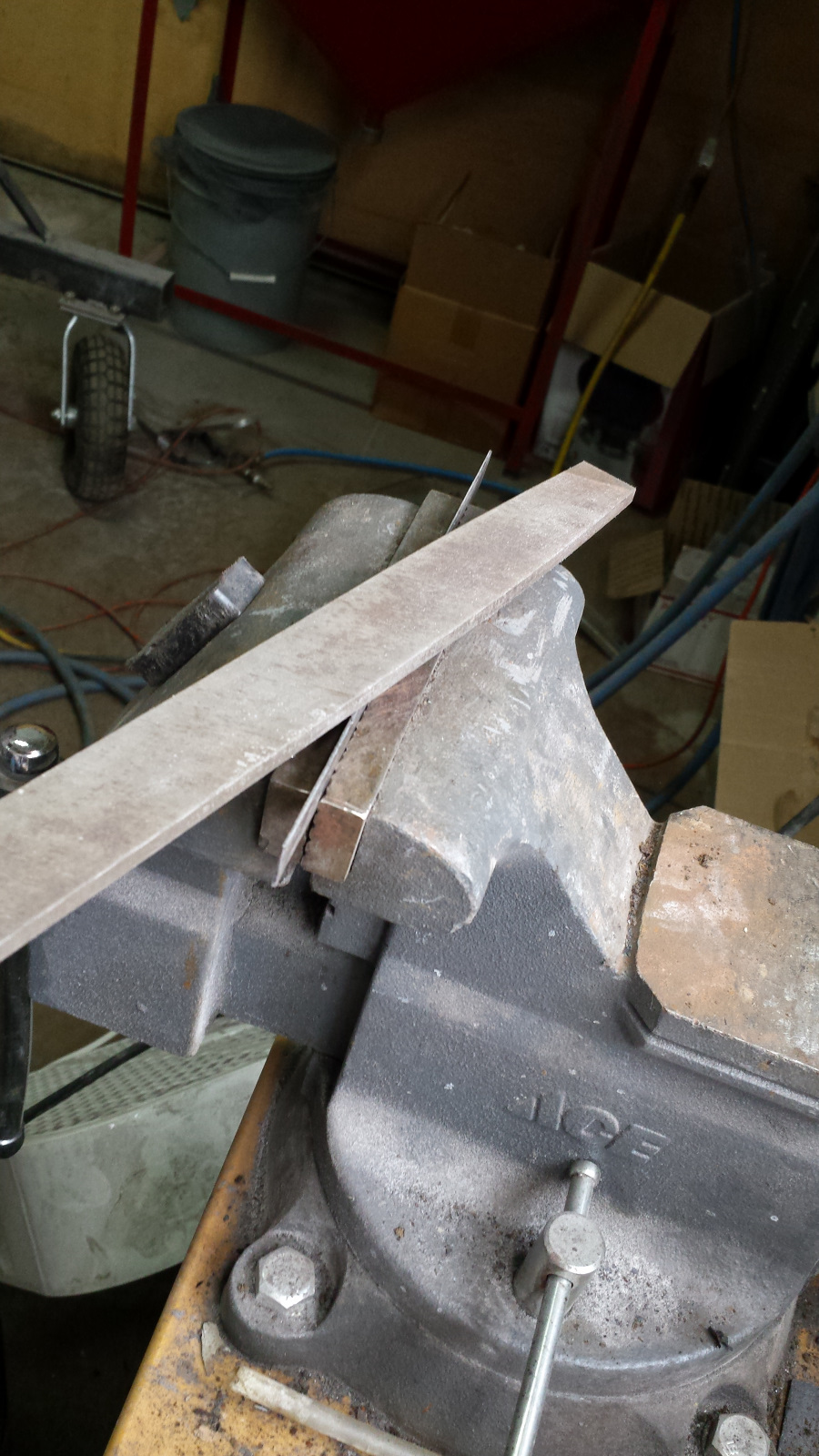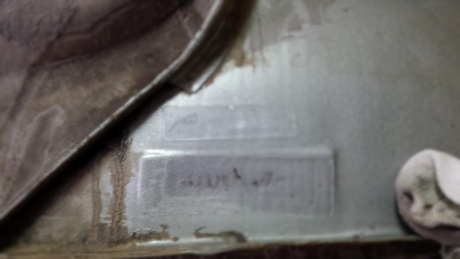 Next was bending the top layer on the brake. I cut the blank wider than needed so I could clamp and bend easier. Then I trimmed it to slightly oversize and punched holes for plug welds. I took it to the stretcher to match that gentle curve. It took very light work on the stretcher. Easy to overdo it. Finally, trimmed to fit the bottom of the channel. Here, it's ready to go in. I left the free edge long. After welding it in and rough grinding, I used a straight piece of 1 inch by 1/8 inch thick aluminum to flex along the curve of the trunk channel while the wife scribed a line. Sorry, no pic, our hands were full! I finally get to use my body file! After grinding the free edge to the scribe line with the angle grinder, I finished the job with the file for a perfect factory looking edge that matches the curve. Then some grinding with a cutting wheel on the die grinder (what did Cary call that? The Johnny Wheel?), and finished with 80 grit on the angle grinder on the areas I could reach. I picked up a 3/8" air belt sander with my HF 25% coupon yesterday and will try to smooth out the bottom of the channel later today. Overall, I'm pleased. What the Hell!!!!!???? Late in the day I worked on more prepping the car for blasting before heading to a party in town. The VIN stamp in the frunk was so caked with paint to the point it was unreadable. I soaked a rag with acetone and scrubbed it off. The number does not match my VIN!!! (IMG:style_emoticons/default/WTF.gif) Is that just a part number? I thought it was supposed to be the VIN (IMG:style_emoticons/default/confused24.gif) |