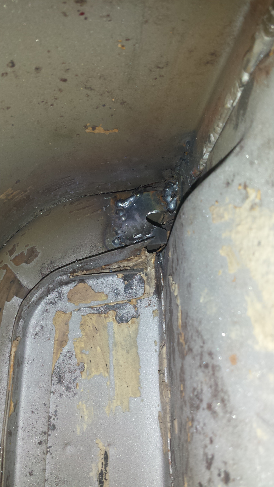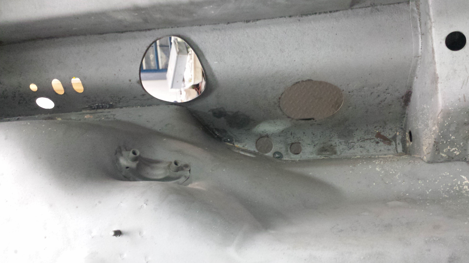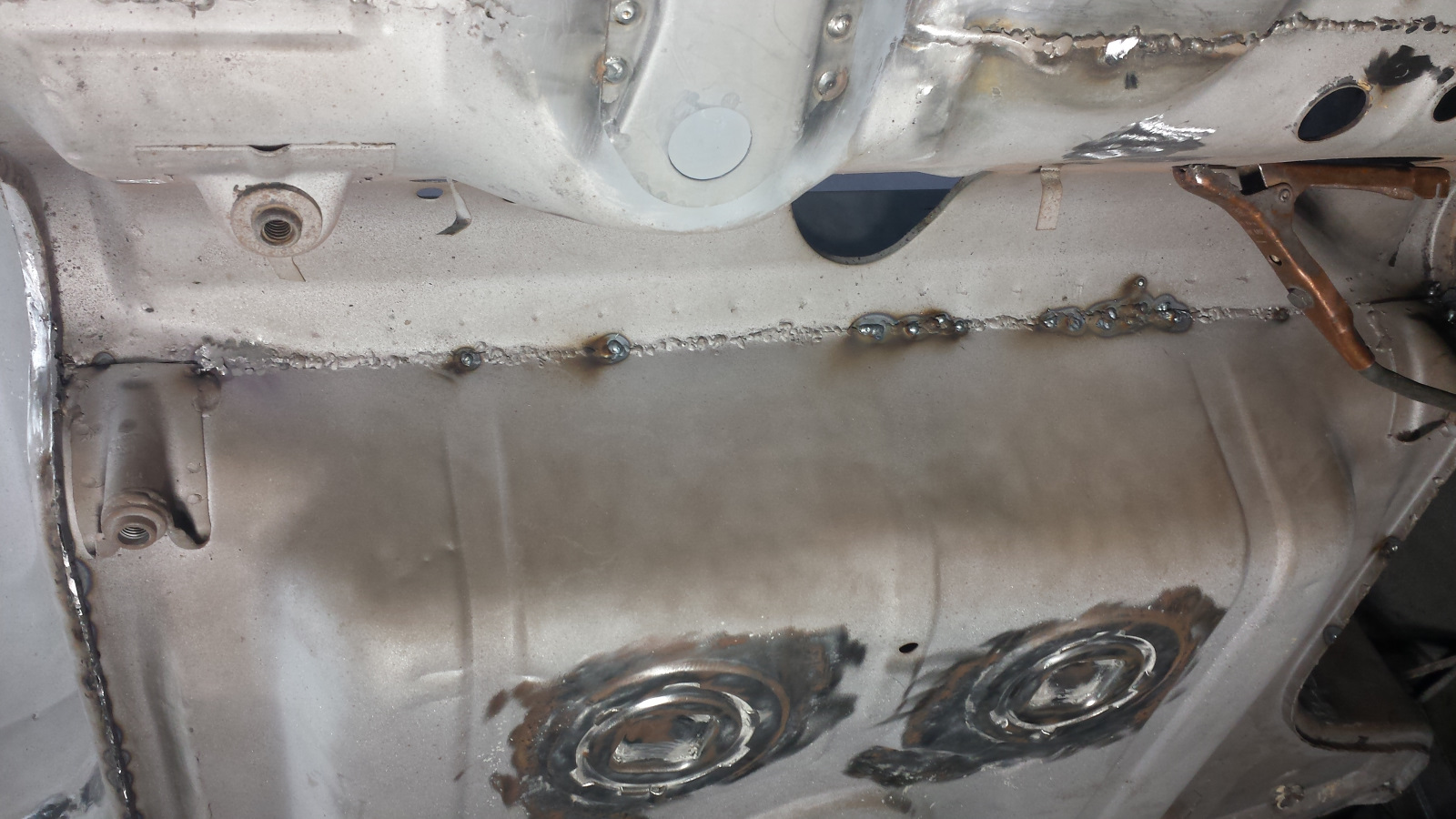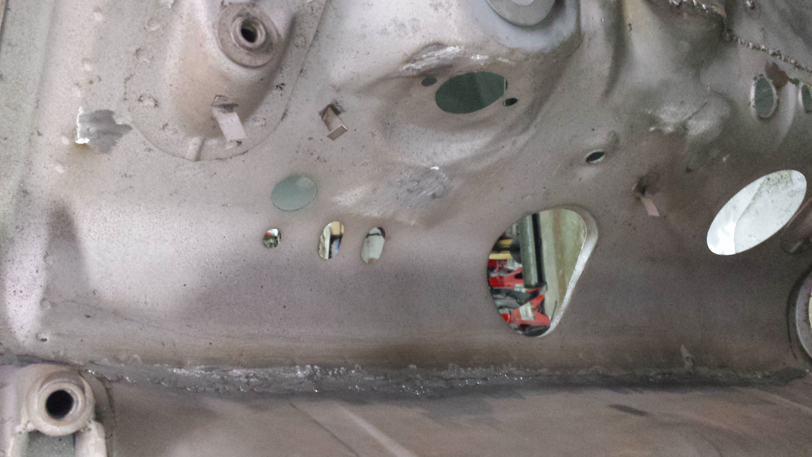 Welded up holes drilled for the fuel pump relocation above the steering rack. I'll be moving it to a late model access cover. Also had a half dozen rot holes from mouse and weasel piss to fill. If you can't see them, then I'm happy. (IMG:style_emoticons/default/smile.gif) Left a couple boogers down in the bottom that I can't get to with tools. They will be buried under sealer anyway. One last one for the road. |