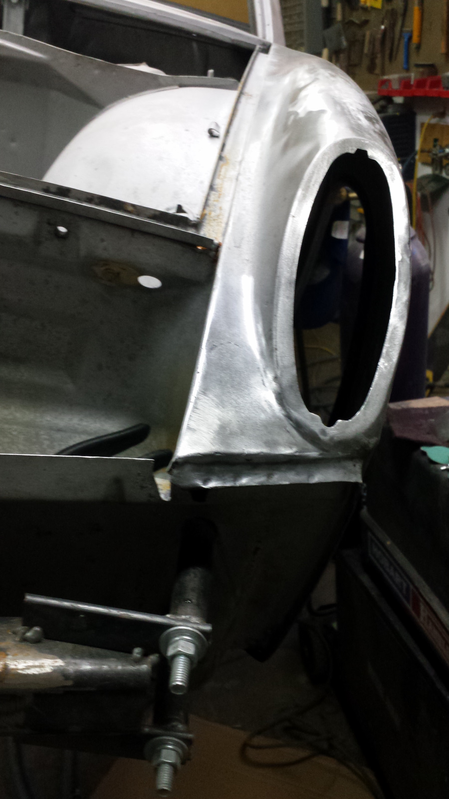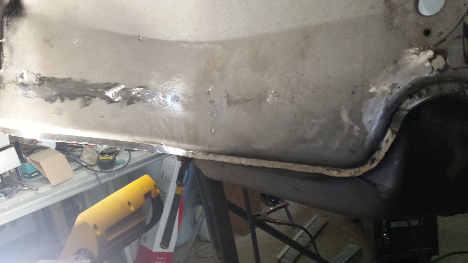 A few more pics. If you've followed from the beginning, you might remember the front trunk floor was the first patch on the project. Boy was I a shitty welder then. Still am, but less so. No surprise I had a lot of shrink around this weld but it isn't half bad either. It will only take a thin bit of filler to smooth out.