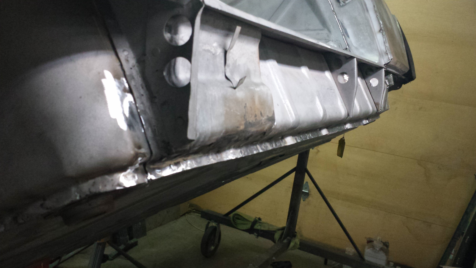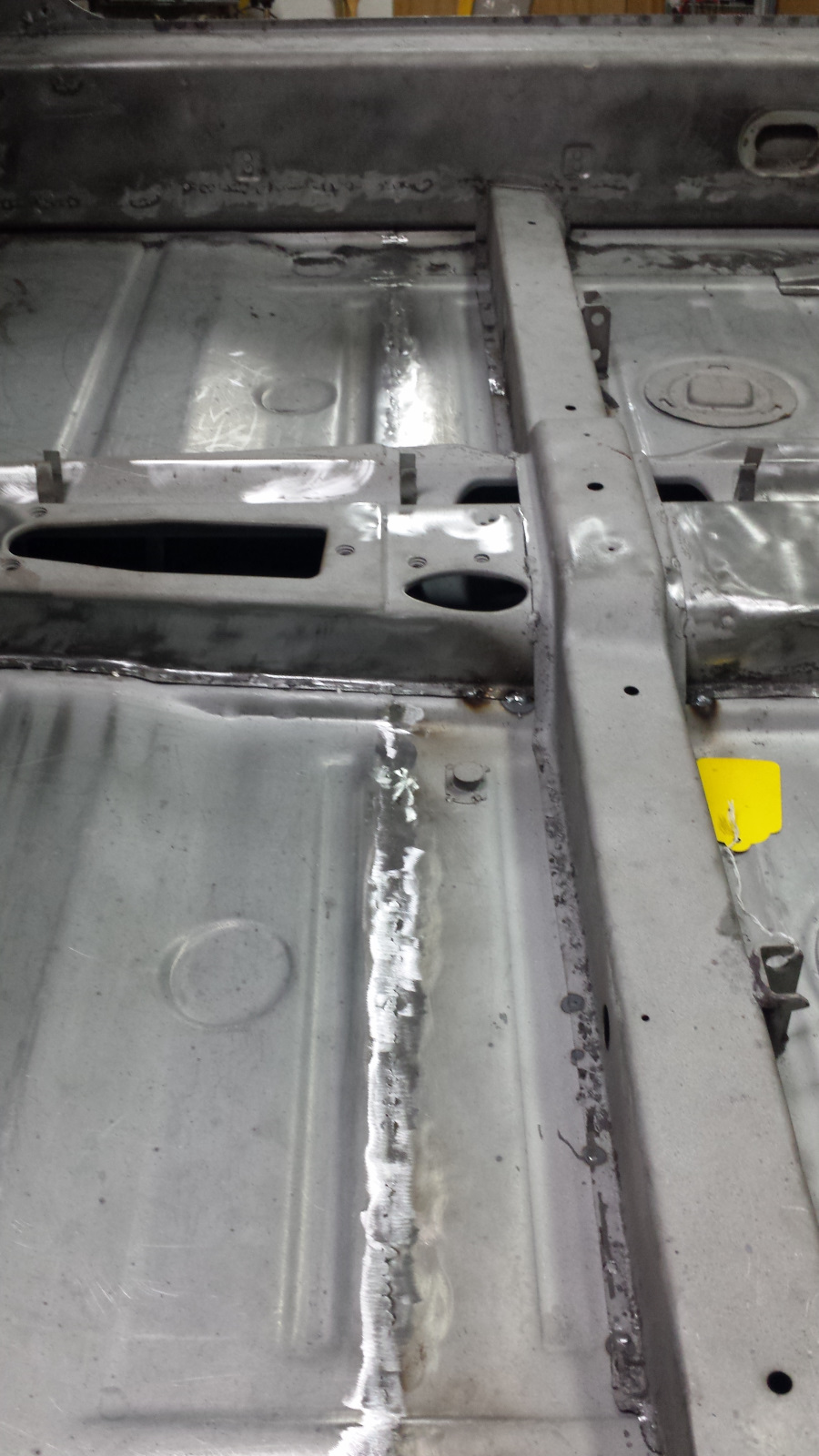 Look at all that clean metal!! Wow. Nice Brent. Let the next chapter begin. I’m storing key pics from your repairs. Great reference. Carry on....... (IMG:style_emoticons/default/welder.gif) (IMG:style_emoticons/default/beerchug.gif) Thanks Dion. (IMG:style_emoticons/default/beerchug.gif) If there is ever a spot you'd like a picture of, let me know. I have a crapload of pics that I don't post. I think I'm at overkill as it is. I forgot to mention the most important part of my latest work. I rewelded any areas of seams on the floor pan and longs that didn't get full penetration due to the failing diode problems. i wanted to make darn sure those members got complete metal fusion. For example, you can see panel edges in a few spots in the left pic. Those have been welded through and ground down. The only sucky thing is that it means I burned through some of the epoxy primer inside my longs, but I'll be spraying inside with Eastwood Internal Frame Coating followed by 3M cavity wax soon, so they should be well protected. |