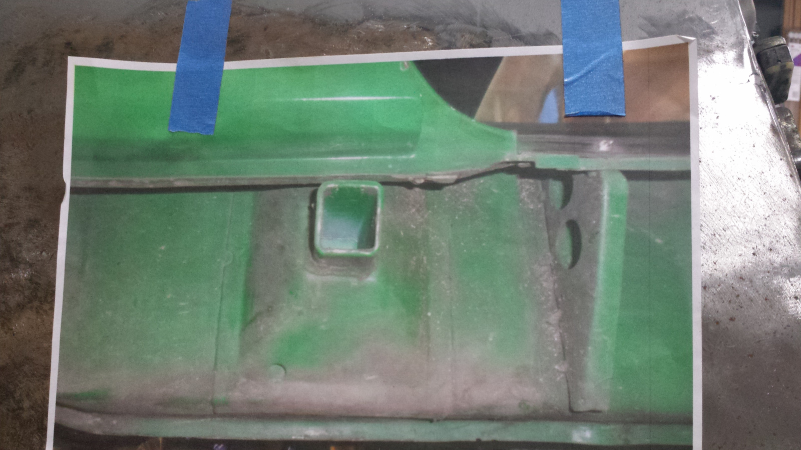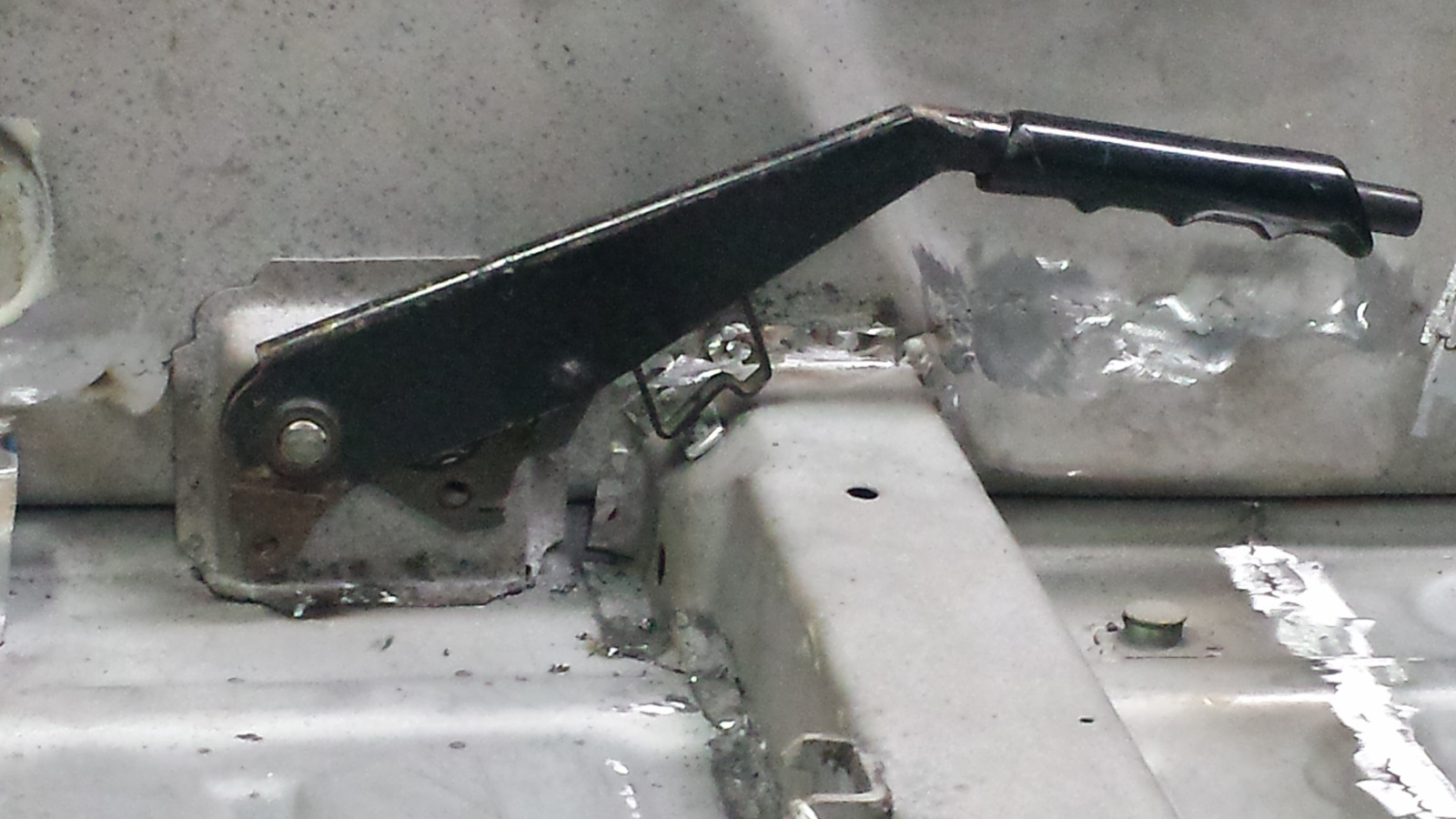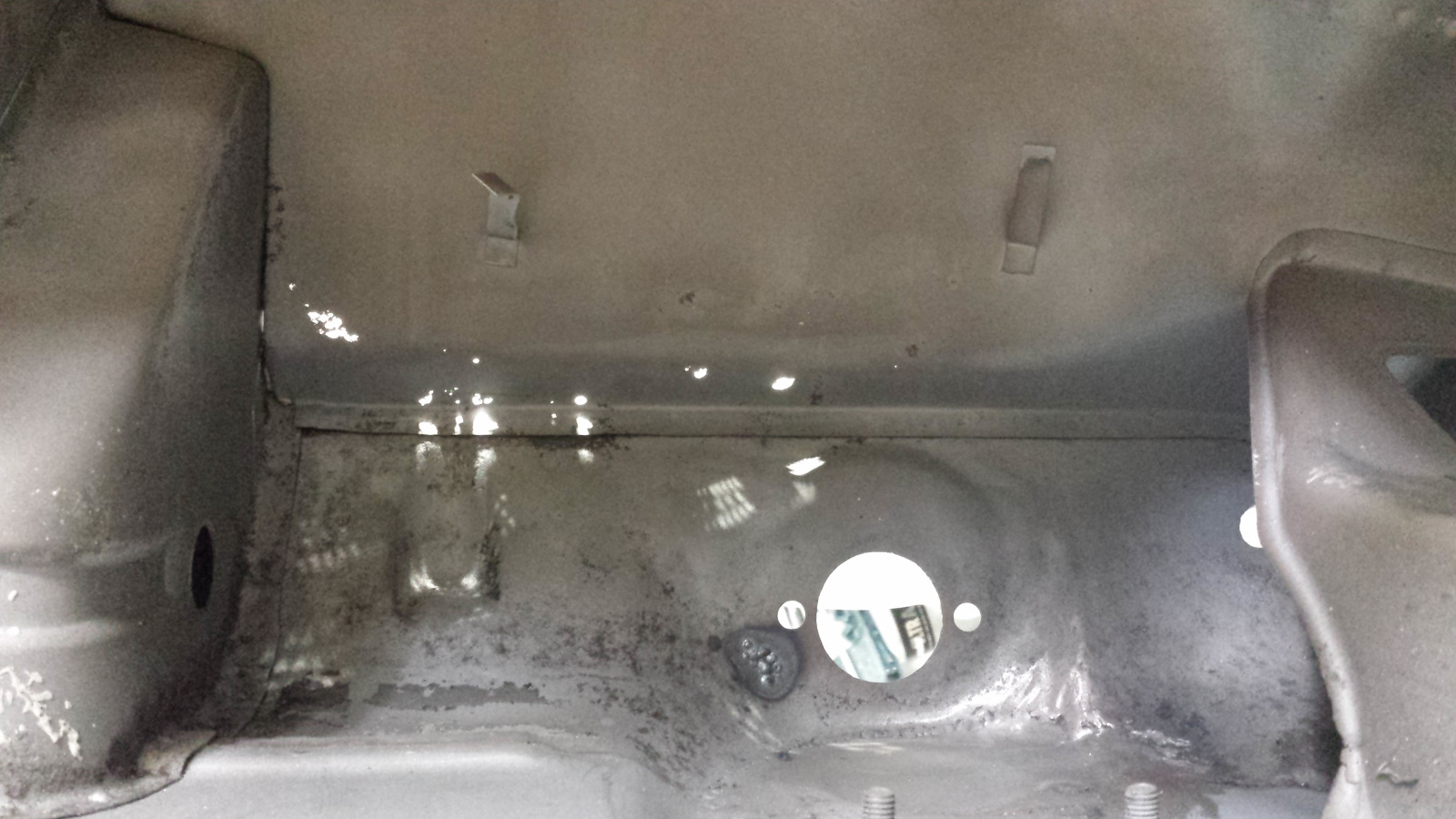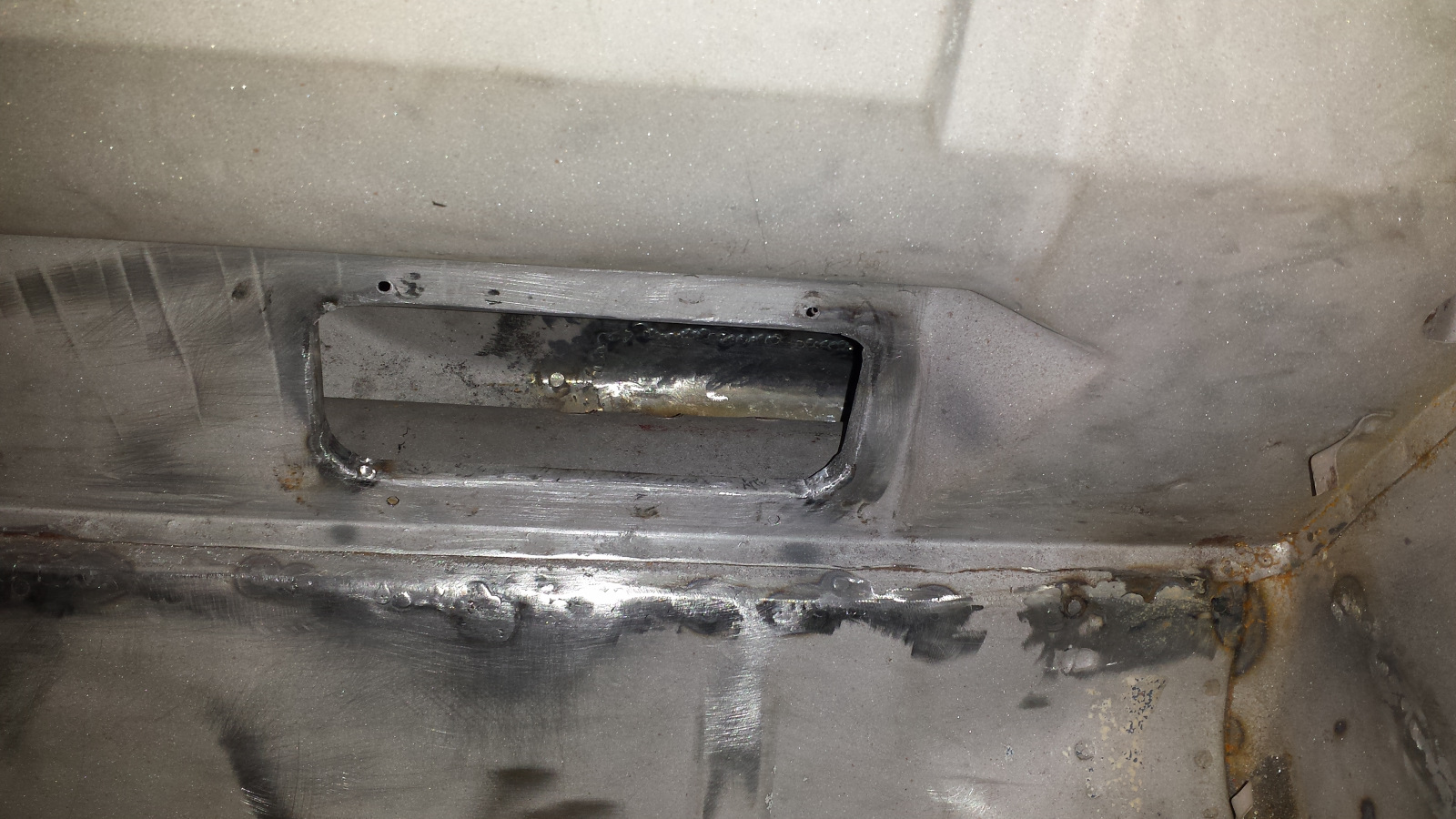 Backside isn't too bad either. Photo doesn't do just to how narrow that crevice at the bottom is. If it wasn't going to be buried under spray-on seam sealer, I'd get in there with a carbide burr and clean it up more. It did extract its pound of flesh though. Floor pan looks like a crime scene. I couldn't work in that cramped space without the cable ties on the tunnel digging into my arm. No biggie. I've said I'd completed my last patch before, so I won't jinx it - just quietly hoping. (IMG:style_emoticons/default/unsure.gif) |