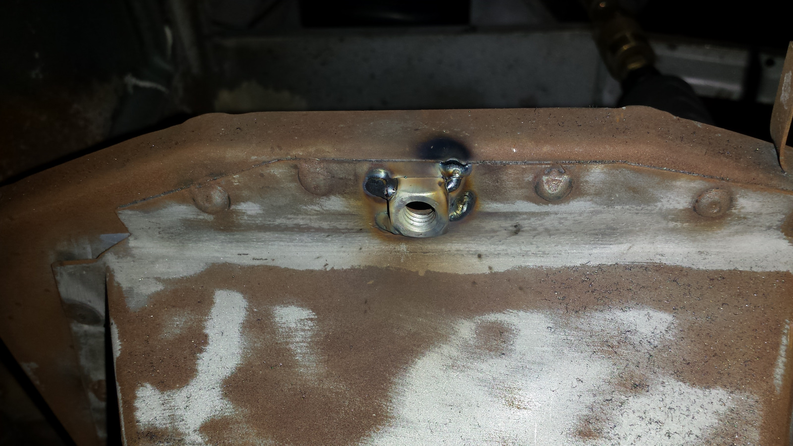 I was a little bummed to see the threaded portion sunk kind of deep in the tube. It would work, but would require a longer bolt than OEM spec and that's the kind of thing that would drive me (IMG:style_emoticons/default/screwy.gif) So instead of sinking them all the way, I mounted them so the threaded portion starts just to the inner side of the hole. I ground them off and think that should work. I said almost completed the task because there is supposed to be a third nut on each side on the inner wheel well section. The RD panel isn't drilled or fitted with a nut (maybe because there is too much variance in how that piece gets fitted to the car) and subsequently, none on the driver's side where I fabricated a patch using the RD piece as a template. So I will have to mount the rocker covers to locate those holes tomorrow to drill and fit with inserts. At least it was a little progress for the day. |
