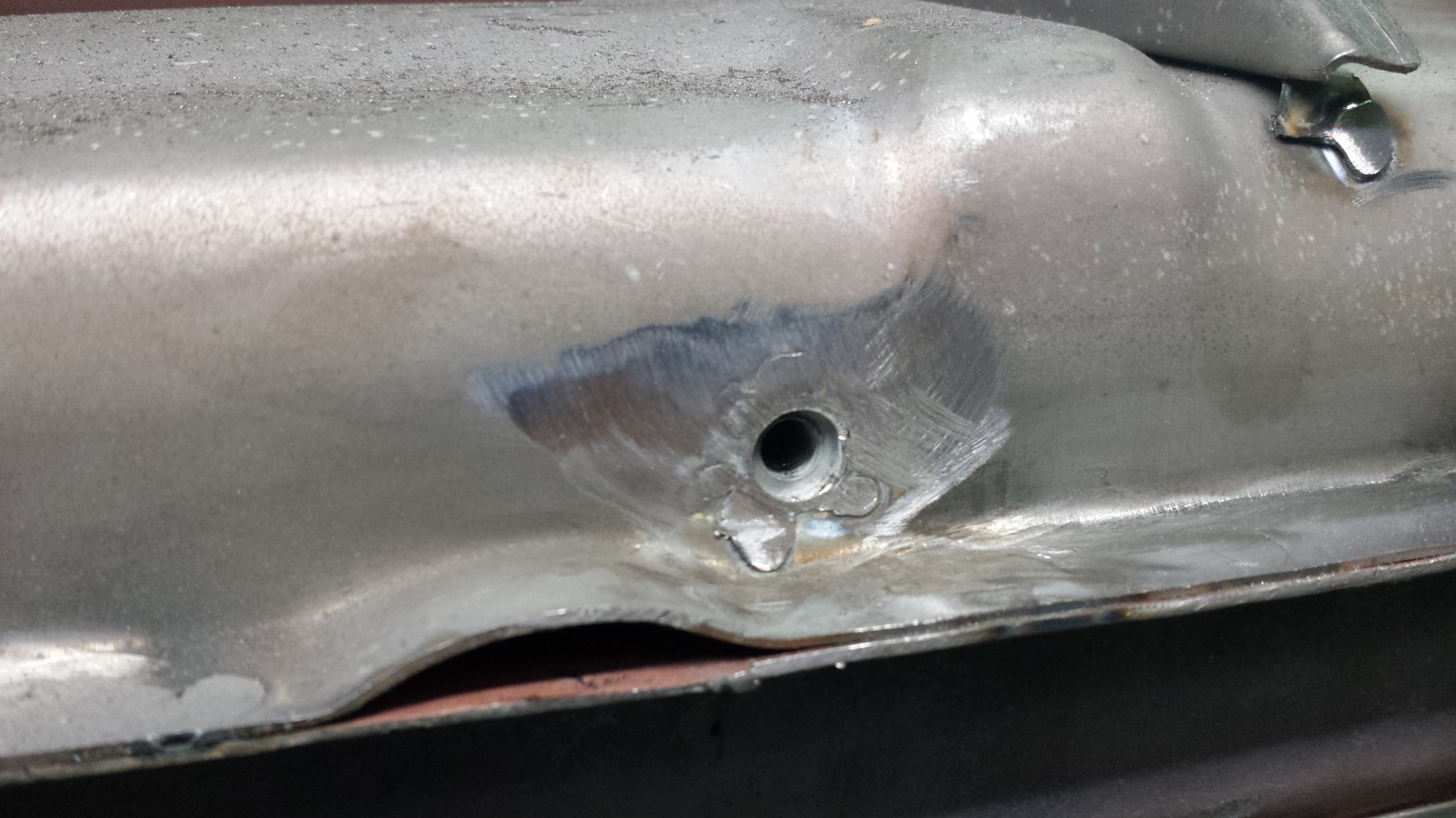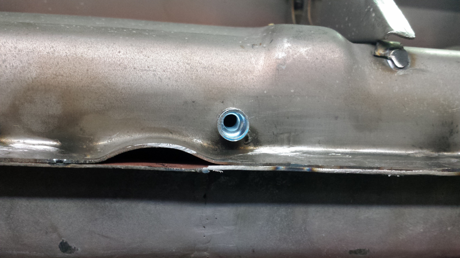 Had an hour to kill before a conference call this morning which was just enough time to sneak out to the shop and mostly knock off an item on the task list (a great luxury of working from home). When I welded up the outer longs from RD, there were nuts welded in the bottom for the rocker covers on the passenger side, but I neglected to check the driver's side and nope, holes but no nuts. (IMG:style_emoticons/default/headbang.gif) It would have been easy to weld those nuts in BEFORE the panel went on, but we're beyond that now. The solution was these weld-on nutserts: