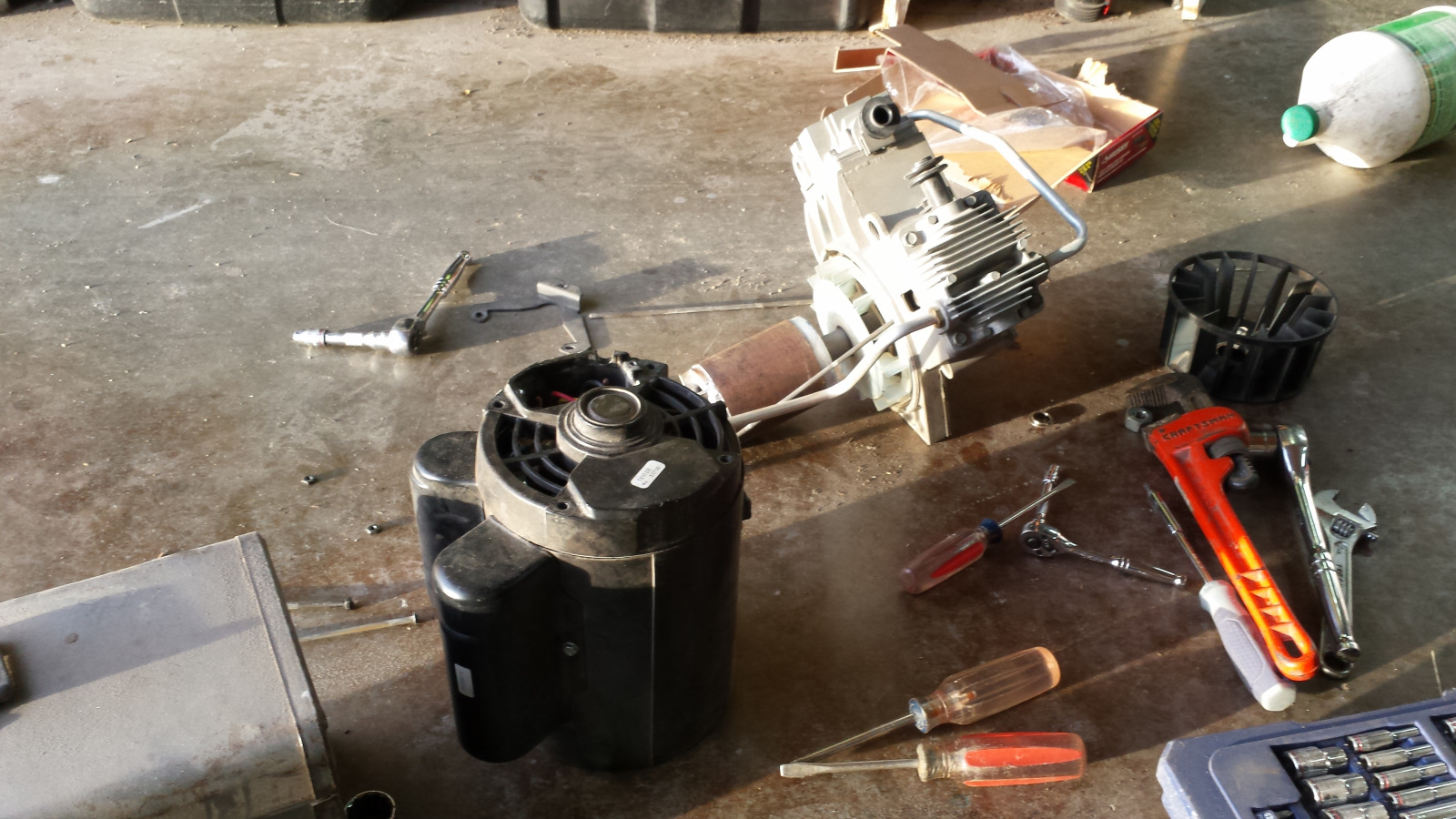 I was making great progress today and was on track to finish the metal work by the end of the day when I heard air compressor kick on and then quickly off again. The motor was hot as hell so I pulled the cover off to inspect. Found the start of a mouse nest over part of the intake but it didn't seem like it should have blocked air flow that much. Let the motor cool down and started up again. In about 20 seconds, it shut off again. Shit! Tore it completely apart, hoping to find more of that nest inside the motor to explain the problem. No luck. Things looked pretty clean inside. No sign of scorched wires and bearing still spun freely. The only things I found were some carbon buildup on a pair of relay contacts that I assume are part of the thermal protection circuit, and the main blower on the compressor was loose but still spinning. I cleaned the contacts and put the damn thing back together, still not sure what the problem is. By this time, I'd lost half a day of work and it was too dark to mount the compressor back on the tank. I'll do that in the morning and hope for the best. Not sure what the plan will be if it's still not working. Just when I thought I might actually beat winter and get some paint on the car. (IMG:style_emoticons/default/headbang.gif) (IMG:style_emoticons/default/hissyfit.gif) |