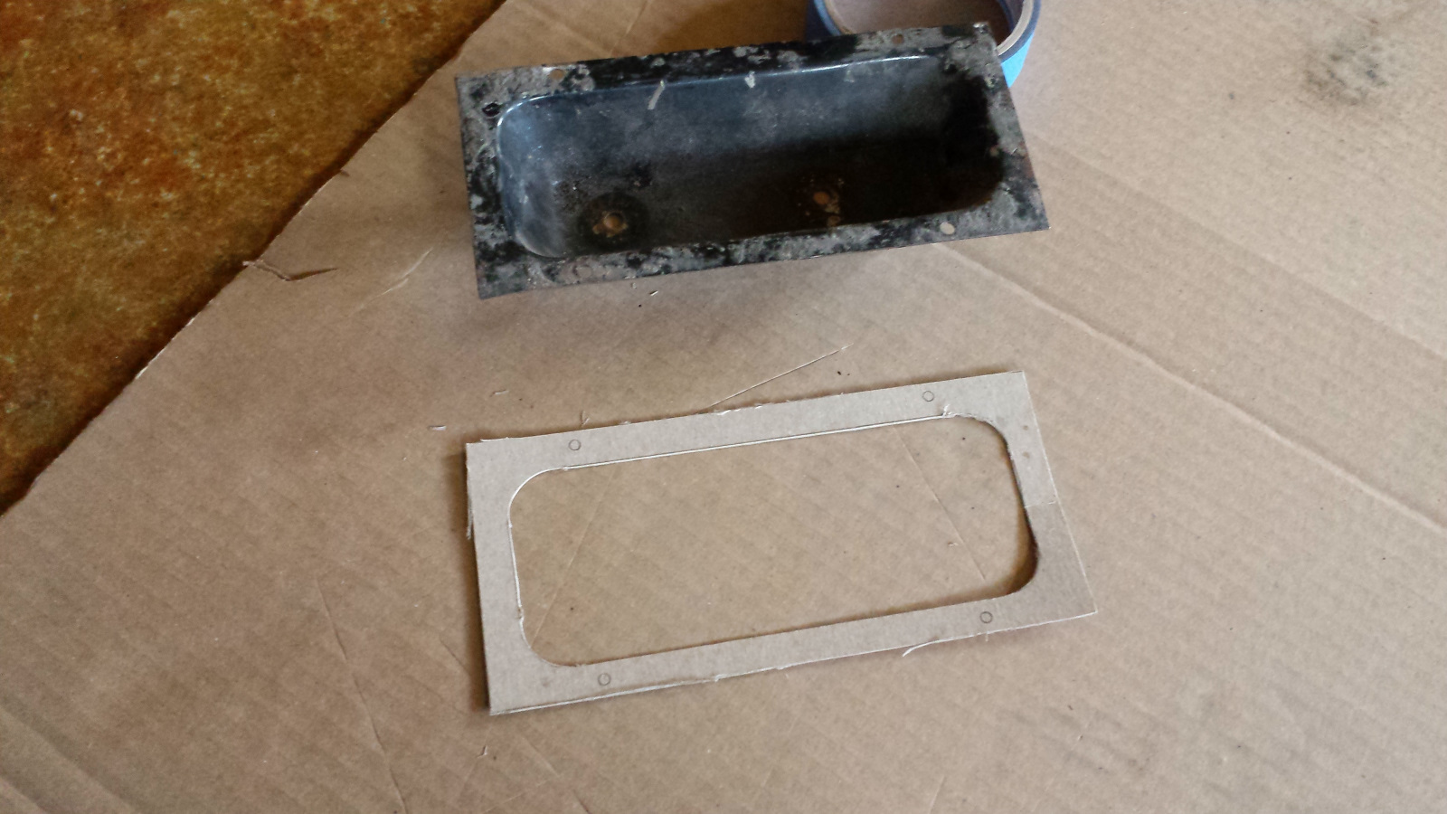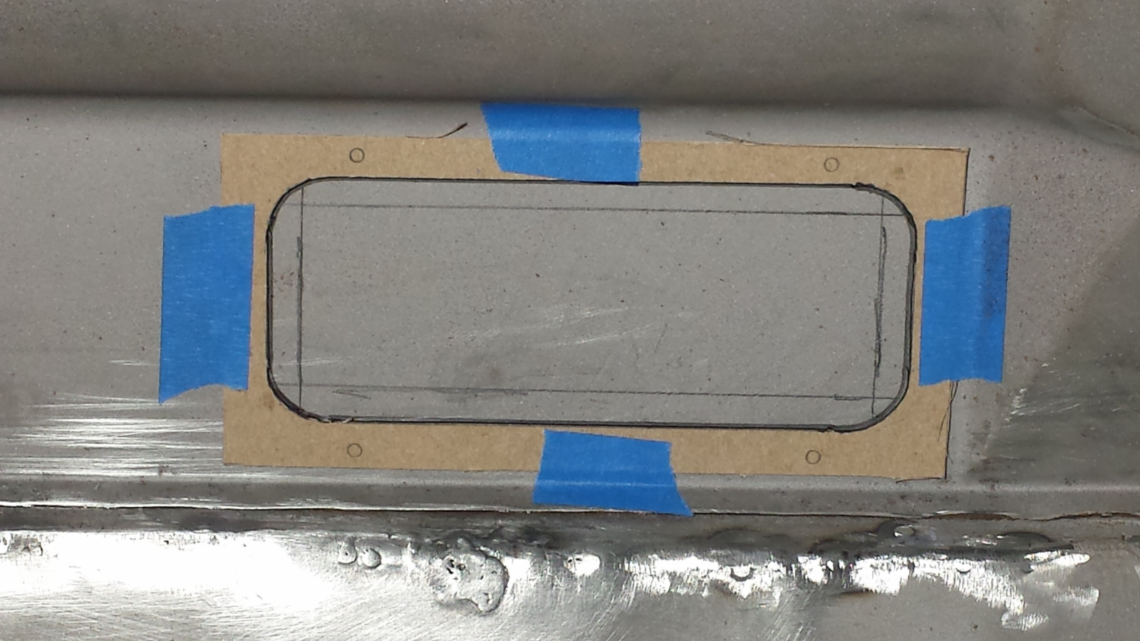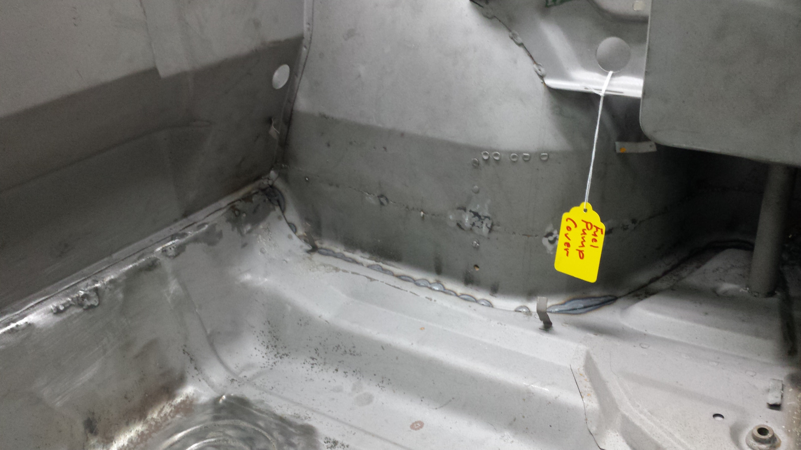 Why Do Something the Hard Way When There's an Even More Difficult Option? Today I was down to the last yellow tag. Started by making a cutout template. Got everything marked out and ready to cut but couldn't find a good reference photo of the opening so put out an S.O.S. on the World. @bretth came to my rescue with a good shot of his car which confirmed my suspiscion. There is supposed to be a flange bend surrounding the fuel pump opening. That changed thing a bit. I set my compass to 7mm (a common flange width on the car) and scribed lines inside the final opening dimensions. These would be my cut lines. Now I was ready to cut. To be continued... |