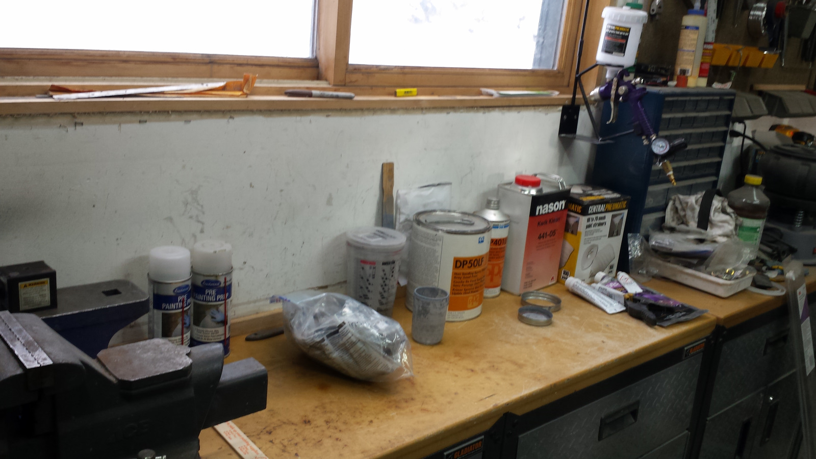 Well, I didn't do anything as exciting as retire today, but it was a pretty fun day anyway. Mountains were socked in with fog which killed our land-based wireless Internet so nothing to do but work on the car (IMG:style_emoticons/default/smile.gif) Started out by reconfiguring the shop to transition from welding/fabricating to paint and body. I cleared the pile of dead tools, hammers, shards of metal, and a quarter inch of metal filings off enough of my bench to clean it up and turn it into a paint mixing station. This really lifted my mood. No more mixing paint on a piece of cardboard while crouching on the floor (IMG:style_emoticons/default/piratenanner.gif)