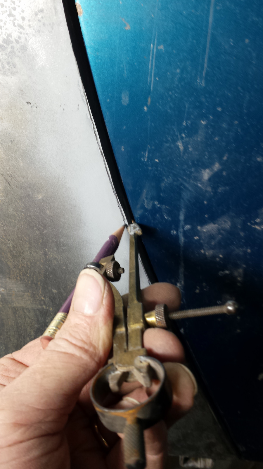 On the other hand, the rear gap needs to be squared away before bed liner goes on. This is the side that I patched the bottom corner of the panel once and adjusted the gap. Didn't like the result so tore it out and patched again, and still managed to fuch it up. Gap is WAY too wide at the bottom. I also screwed up the alignment so it sat proud of the door which was actually lucky because that gave me a little extra metal to push around to close the gap. Otherwise I would have to split it and weld in a piece of filler. This pic is actually after I fixed it so I just pushed the door in a little too far to show what what it looked like before. The plan was to bang that section forward with my flat bar inside the fender, alternated by hammering the side in toward the jamb to simultaneously close the gap and bring the fender flush with the door. I couldn't figure out why I wasn't getting headway with my flat bar until I realized I'd forgotten to reverse the bevel so it contacted the outside corner. (IMG:style_emoticons/default/screwy.gif) Yeah, that's snow on the ground outside the window but it should start warming up tomorrow. The plan actually worked. I couldn't get a good photo, but the gap is closed to near 4mm but the edge is rolled to a softer bend. That's okay because I can add metal there. I didn't say it was an elegant solution, but it's a solution. (IMG:style_emoticons/default/rolleyes.gif) AI guess I forgot to snap a pic after tacking along the edge, but you saw it on the other side. After that, it is a repeat of the other side. Scribe with compass and grind back to the line. Looking much better. The door is actually slightly ajar in this pic because I don't have the striker's mounted and it swung open a few millimeters. So the gap looks a little wider than it actually is. It's pretty much dead on at 4mm the whole way. That was a good spot to quit for the night. (IMG:style_emoticons/default/beer3.gif) |
