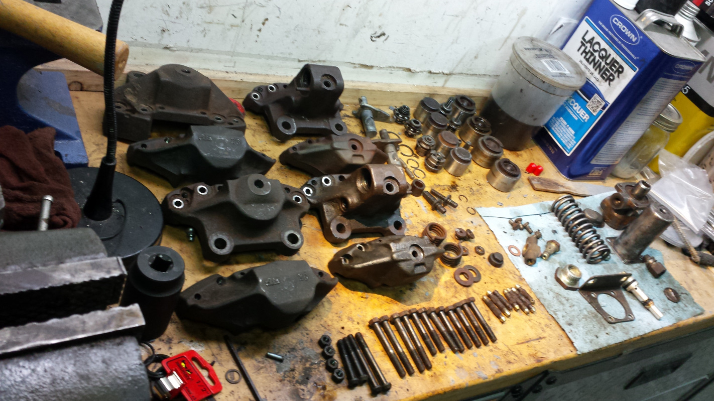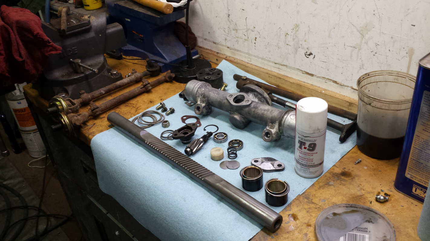 Okay, back to serious work of harvesting hardware to send for plating. I tore down the steering rack. That thing was a little bitch. The oil seal had bare metal outer ring that had fused itself but good to the magnesium housing. Had to invent a couple new curse words to get the pinion gear out, but I prevailed.