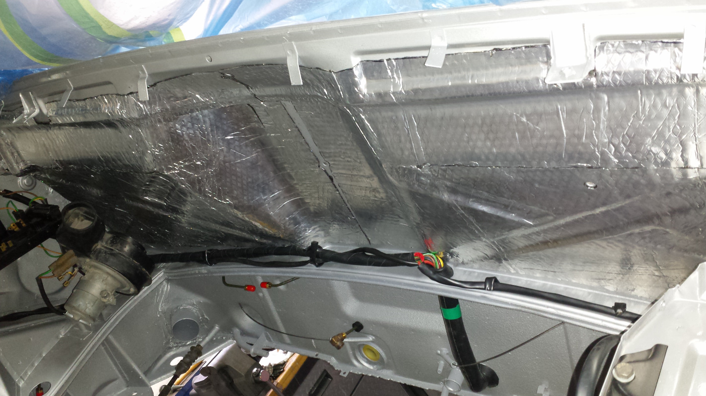 The plan was to haul that heavy and bulky firewall pad out of the shed and put it in the car, but it didn't pass inspection. The lead-weighted rubber looked fine and only needed a cleaning, but larger areas of fiber (does this stuff contain asbestos?) were missing. Looking at alternatives, I strongly considered the 914Rubber option for replacement pad but quiet is very important to me and I thought this would be an opportunity to upgrade to more modern materials. Searching the many options and weighing them against my tight-ass CSOB criteria, I took the hint from @76-914 and ordered some of this on ebay for $34 shipped: (IMG:http://www.914world.com/bbs2/uploads_offsite/i.ebayimg.com-20845-1544993845.1.jpg) It is very similar to the sample of H-Liner from B-Quiet that I have. The foam on this stuff is more dense, which seems like might be a good thing, but the foil face on the B-Quiet product is more durable as this stuff seems a little on the fragile side. The other difference is that the stuff I bought is 1/3 the price of B-Quiet and got really good reviews on Amazon. Since I wasn't going bone stock, I decided to up the ante and put some of my unused Noico sound deadener to use as a base layer for extra sound absorption. Using the original pad as a template, I cut the materials to match. Next step was to install the Noico. I've already stated my policy on the Mercury spaceman look. There were seven childhood heros who could rock that look but that's about it. I don't want my engine bay looking like a pot grow room so the open cell liner needed an extra treatment. Okay, here's where I screwed up. Despite the cheesy commercials, I've used Flex-Seal to waterproof planters to grow carnivorous plants (have we established that I'm weird?) and knew that it creates a finish texture that is a good match to the original sound pad. But don't use Flex-Seal! Actually, it worked well but it wasn't until it was too late that I realized that rubberized undercoat or body schutz would work just as well and be more cost effective. To match the texture of the original pad, you really need to build up 3-5 coats. Flex-Seal is $13/can and it took a full can just to spray one coat. The CSOB in me decided the one coat was enough even though you can still see the wrinkles of the foil face but looks original-ish. George (dr914) was nice enough to post the NAPA part # for the correct panel fasteners for installing the pad. The adhesive backing on the pad worked pretty well but I did have to supplement with just a littler contact adhesive in a couple spots where the pad makes sharp bends. If I'd had my epiphany BEFORE sticking the pad in place, I would have spent more time building up layers to create a thicker coating and match the original more closely. I still think it looks good. Time will tell how durable it is. A major complaint of the original pad is the weight. I've read it is 11 lbs. but honestly, it feels heavier. All I know is that it bottomed out the 7 lb. max on the postal scale I had available to measure, but I'll bet it is closer to 15 lbs. So anyway, how does my new version compare? Well, the Noico weighed in at 4.6 lbs. and the open cell pad added a whopping 0.9 lbs for a grand total of about 5.5 lbs. That's a decent weight savings. Of course I don't know yet how it will perform but I can tell you that standing inside the engine bay, the difference was immediately noticeable. The space instantly took on that hushed atmosphere of an insulated space. I'm pretty sure the cabin will be as quiet as a Lexus (IMG:style_emoticons/default/lol-2.gif) |