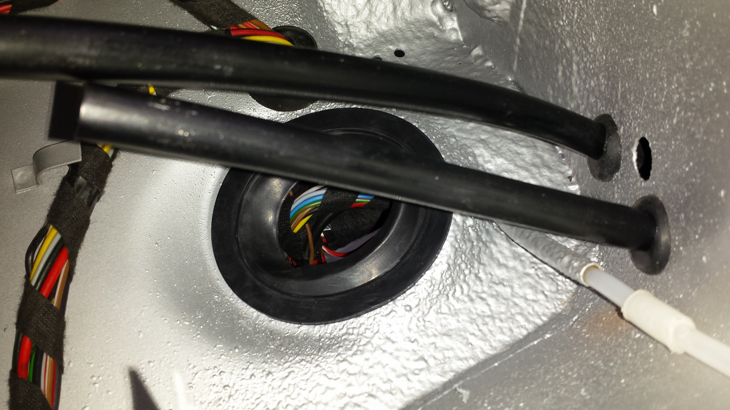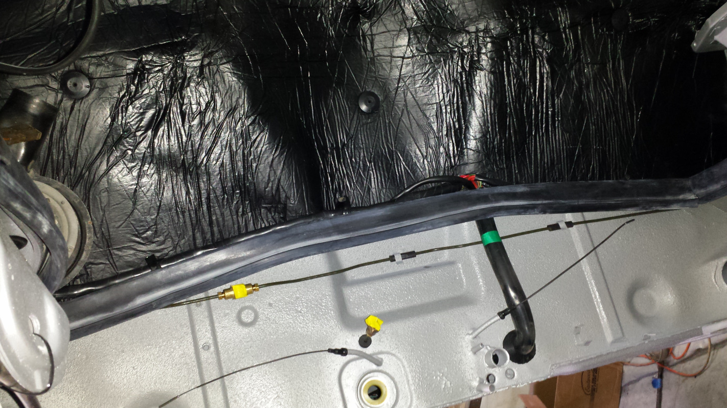 Another shot of the cable with a new heater hose grommet down there. I also installed the 3-hole grommet for the Bowden cables. I hope to hell that is in the right hole because it was a little bastard to get in. Foreshadowing of what is in store when I install the air box? (IMG:style_emoticons/default/blink.gif) Another shot of that heater hose grommet with some spiffy harness showing through. Then it was around to the back side to play with my nipples... heater cable nipples that is. You can see the NOS OEM shift bushing there too. I also installed the engine shelf seals. Hard to photograph but I cut them a little long to leave some extra for when they shrink. You can see one of the new roof latch cups in this one. I installed a couple other things too but that's enough screwing around, time to get to work. Attached thumbnail(s) |