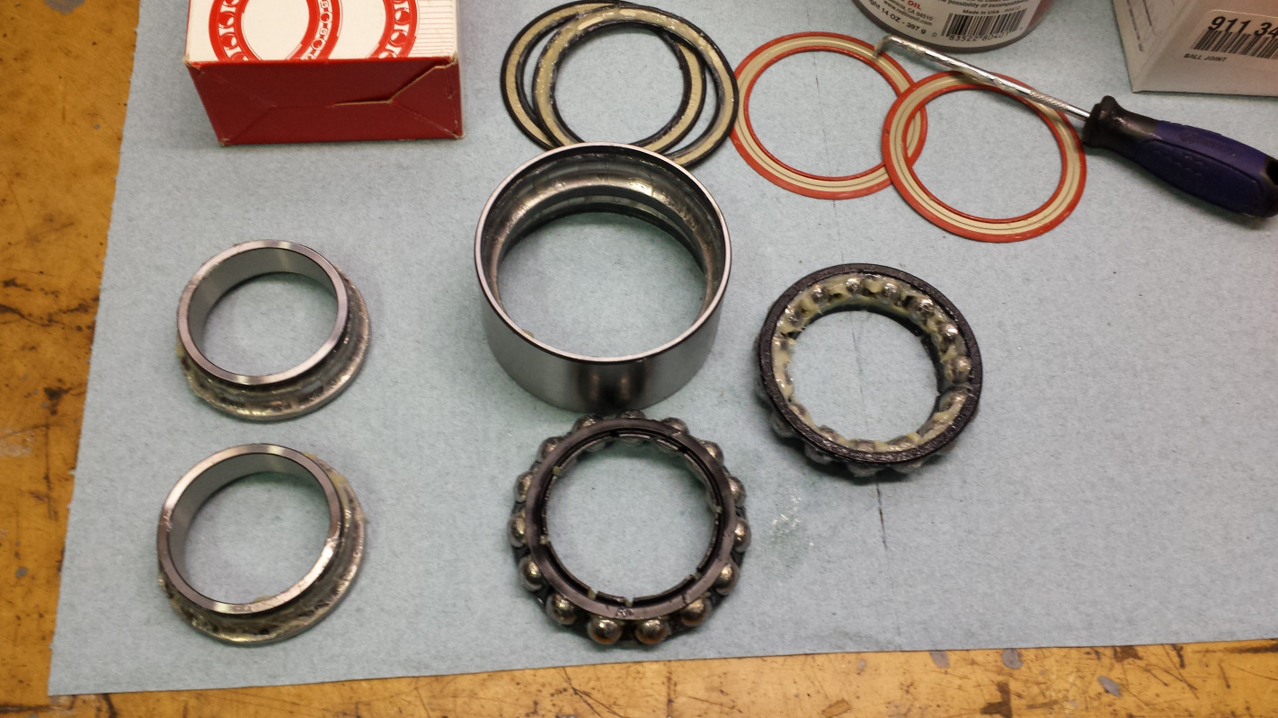 Good call on the bearing grease. Downright piss-poor QC - or maybe they ship them like that on purpose, so you'd have to buy new ones in the not-to-distant future (IMG:style_emoticons/default/confused24.gif) FAG isn't the only game in town ... are SKF bearings suffering from the same QC process? I wondered the same thing about SKF. I just ordered my bearings from Eric/PMB. I think he sells both FAG and SKF depending on availability. I used SKF bearings in my rack rebuild. One bearing was new and stamped "Made in France" and the other was NOS made in Germany. Maybe the French have better QC (IMG:style_emoticons/default/confused24.gif) BTW, I forgot to mention that I wound up with a couple extra bearings from the rack rebuild if anyone is planning to do a rebuild. One is a NOS made in Germany SKF 16002 which fits my 1973 rack. The other is an FAG 6202. Not sure what that fits but if anyone can use one or both, I'll send them to you free. ![]() |