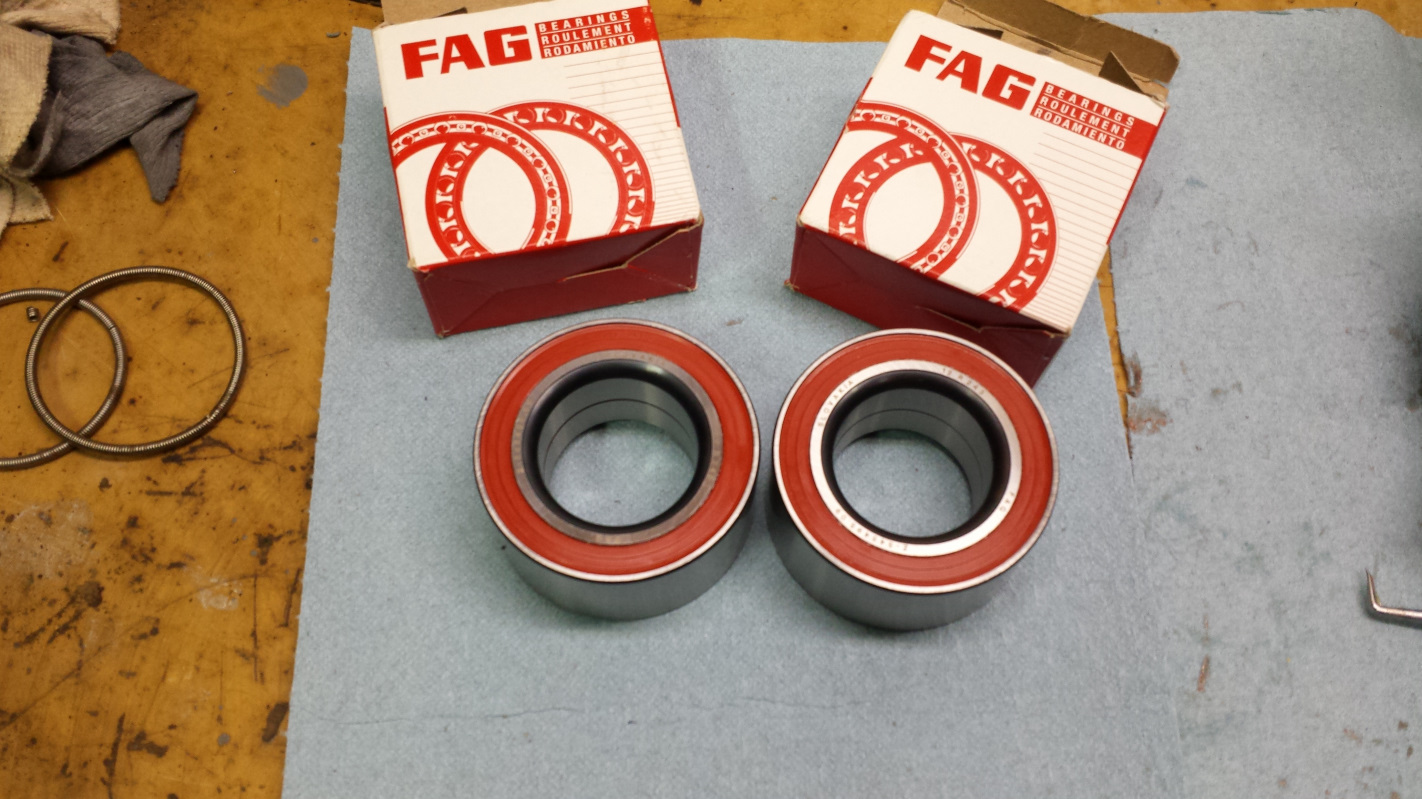 One more little project completed today. Also in my box of PMB goodies was a new pair of rear wheel bearings and a pair of ball joints. The joints have nothing to do with this project. I just wanted to show off my new balls.